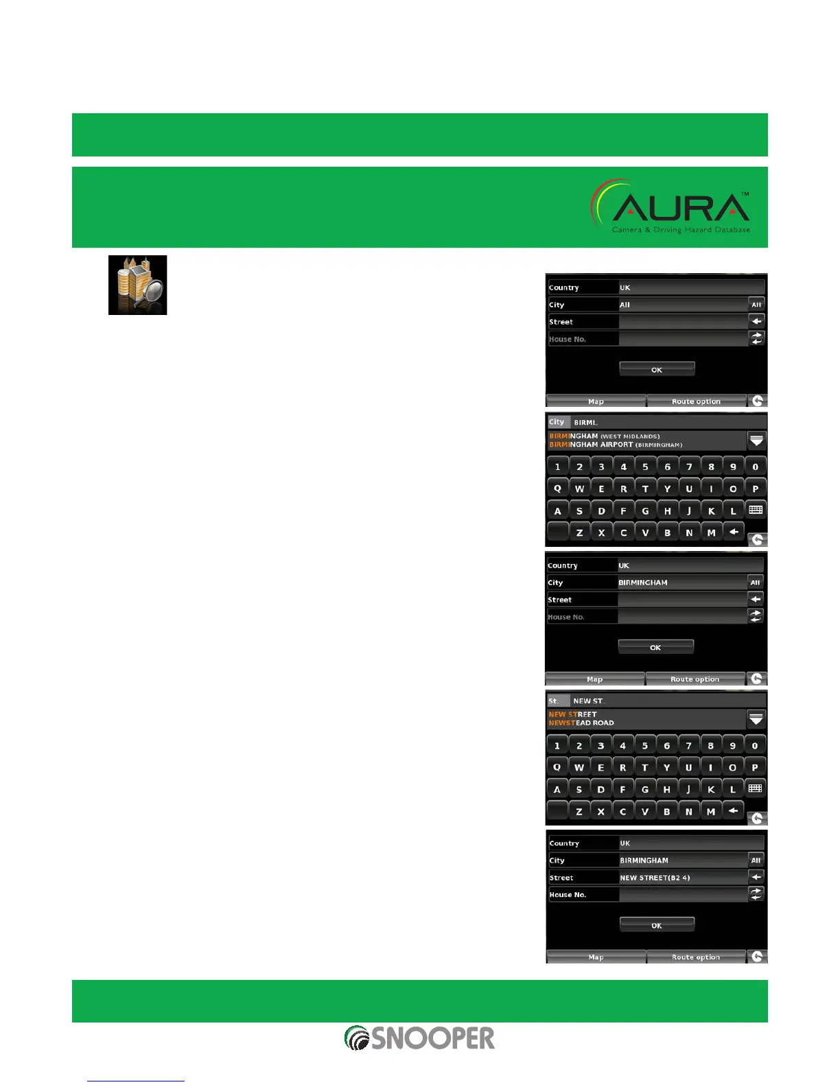 As you begin to input the road or street name, Snooper will automatically prompt you