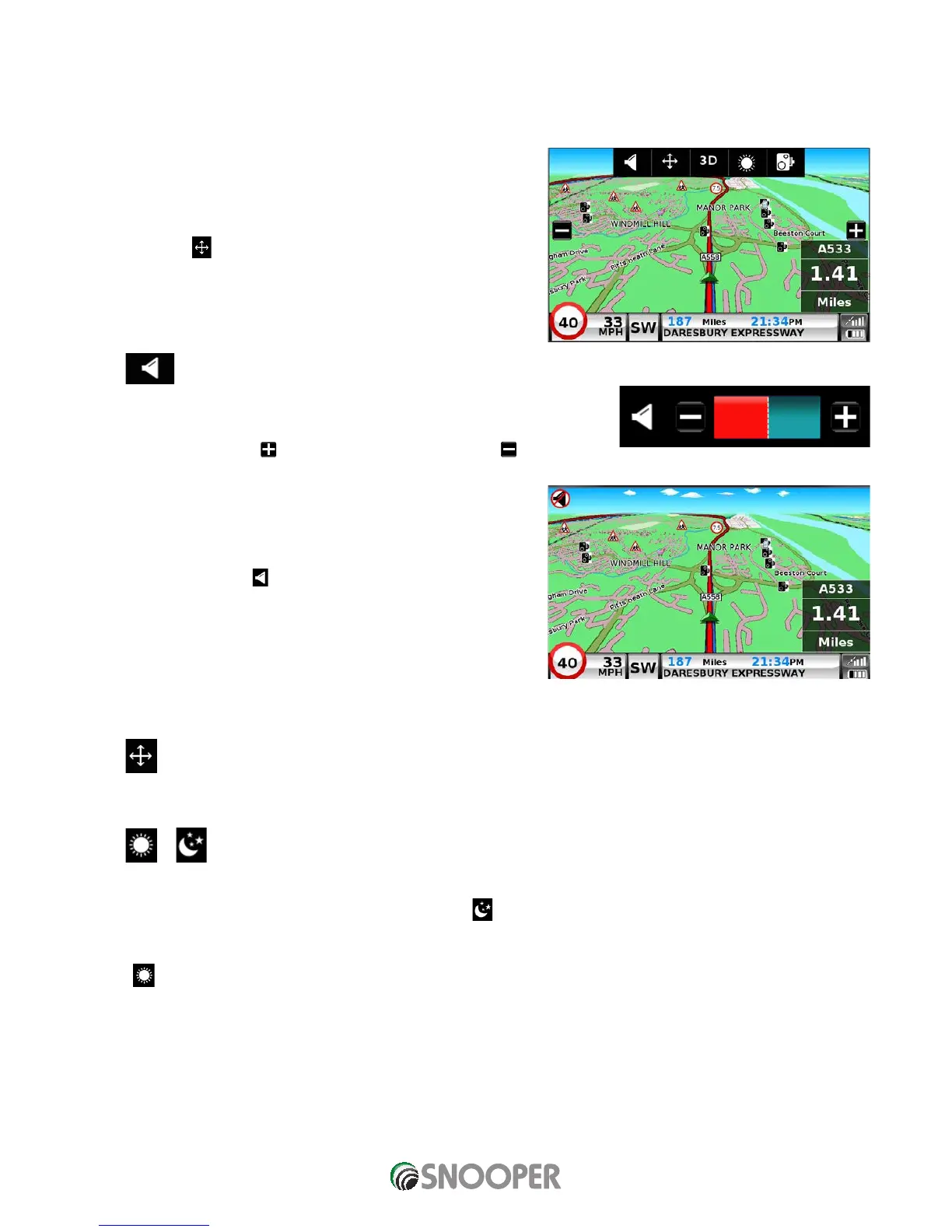 By pressing this icon you can manipulate the map by touching and moving your finger on the screen.