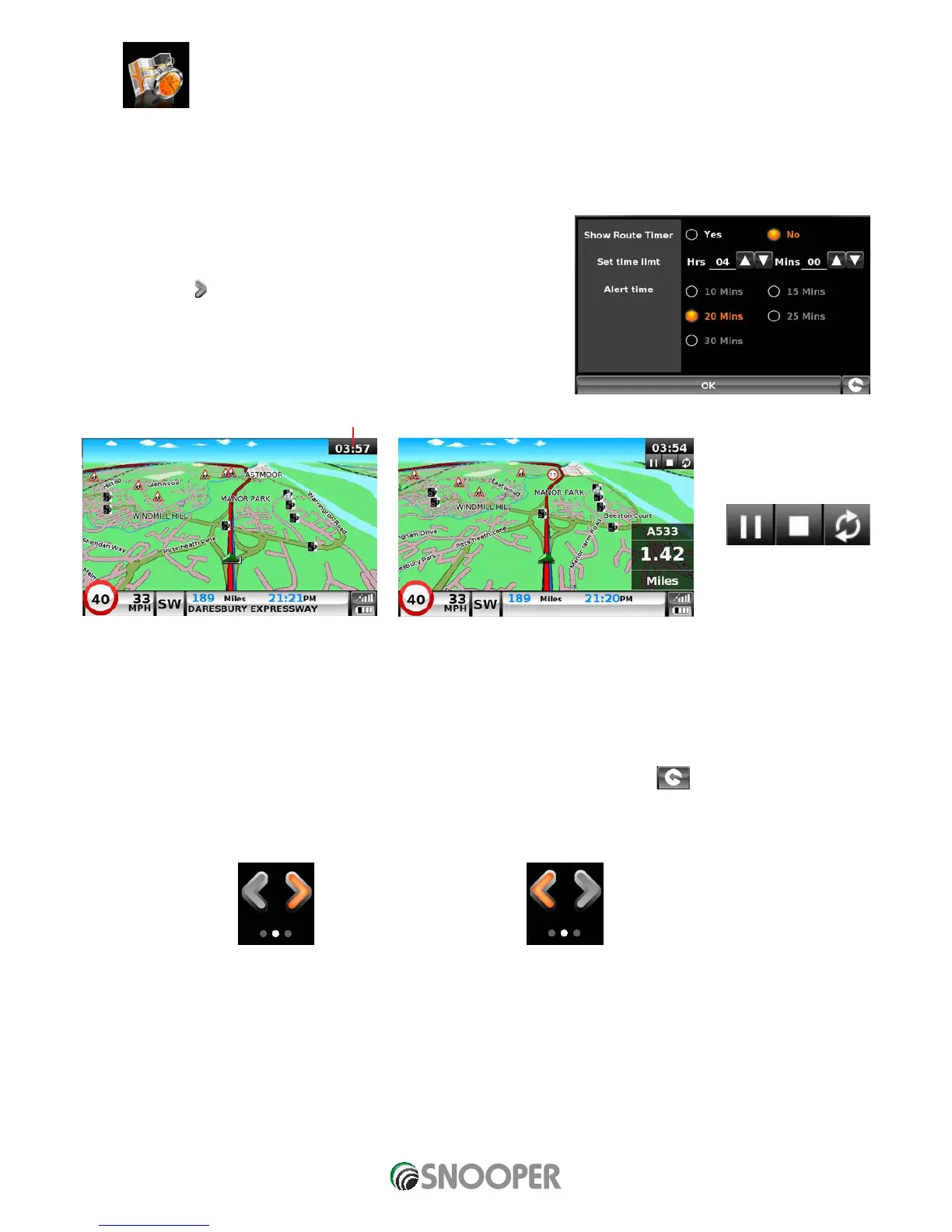 advanced warning time you require before your next break is due. The Route timer clock will then keep you advised of the driving