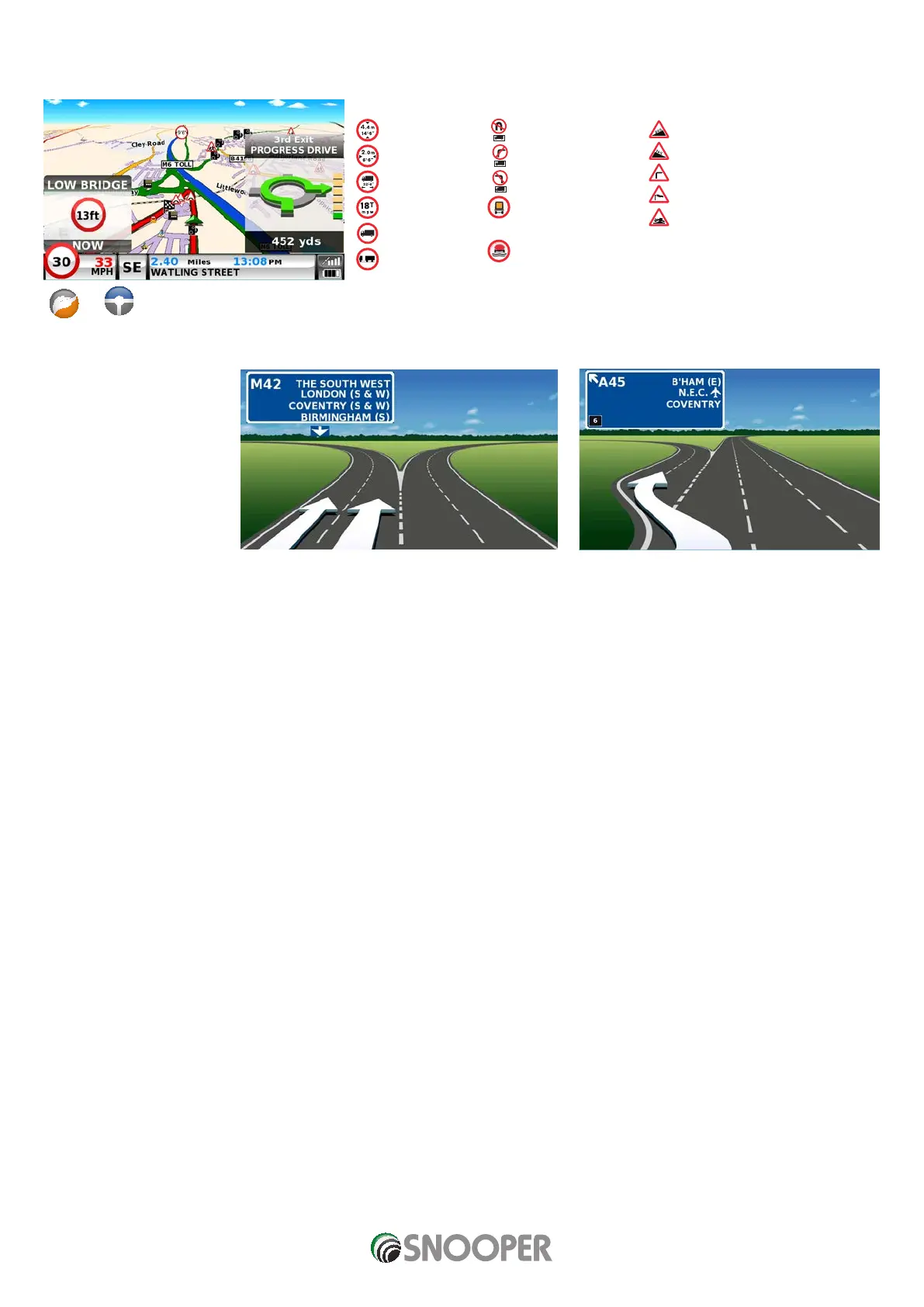 Additional warning or information pop ups will appear at the bottom left hand corner of the screen. If lane guidance is displayed
