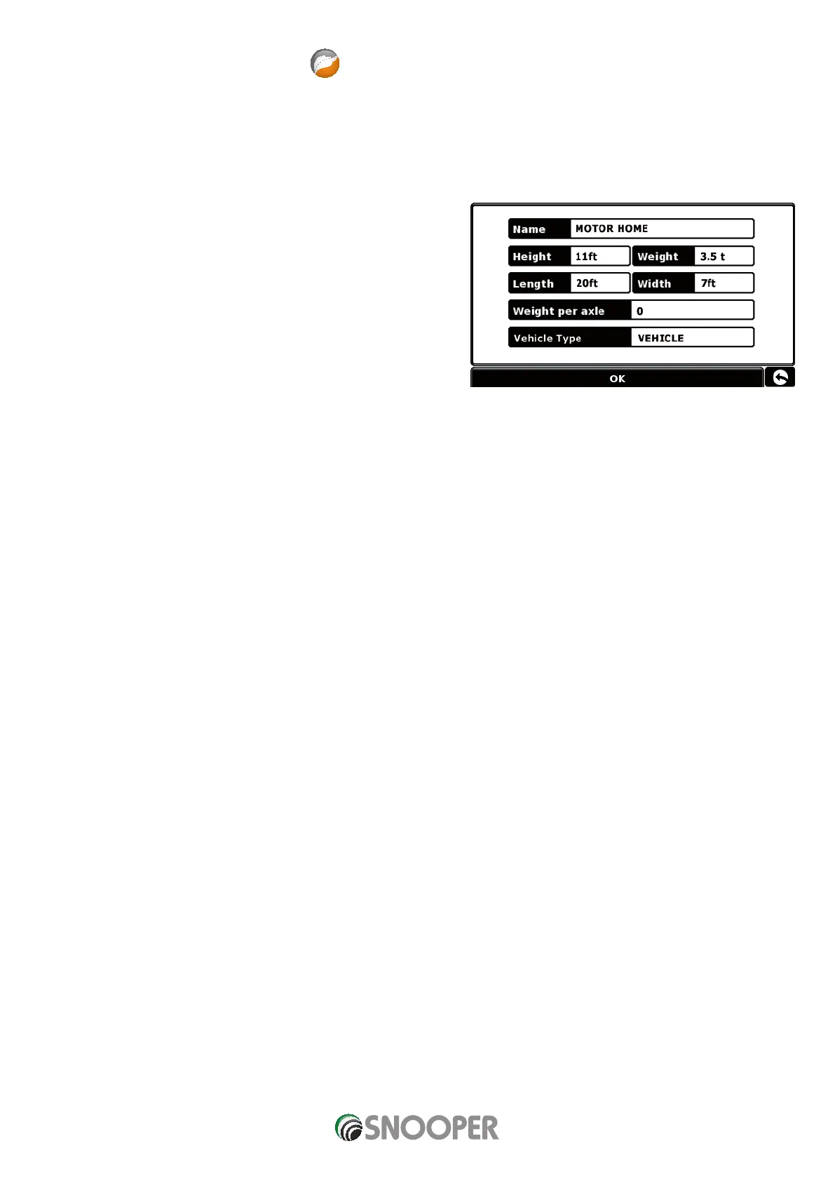 height, weight and width. It is possible to save the settings of 10 different vehicles. Follow these instructions to enter your vehicles