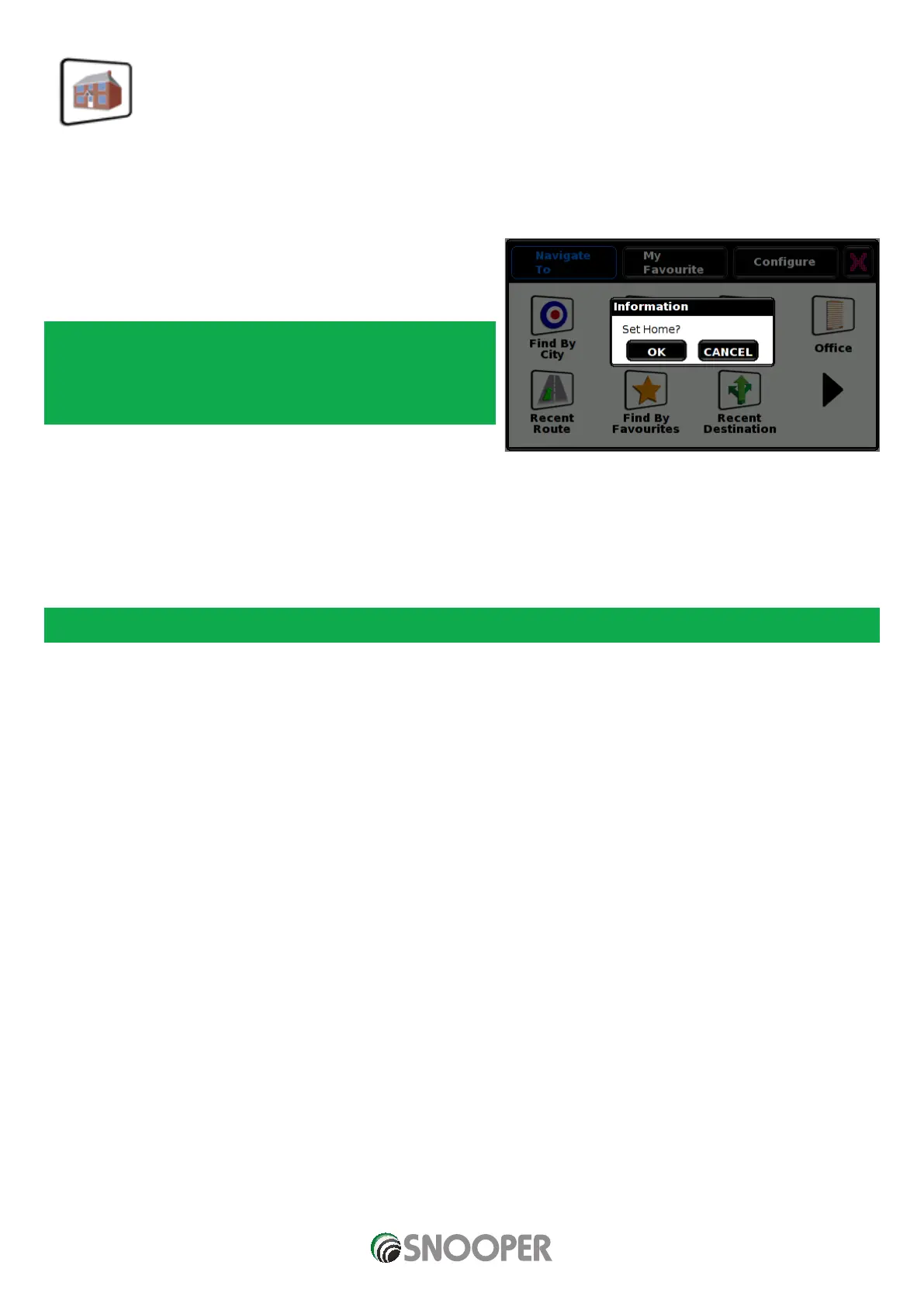 Once your home address has been saved, Snooper will be able to calculate a route to this address.