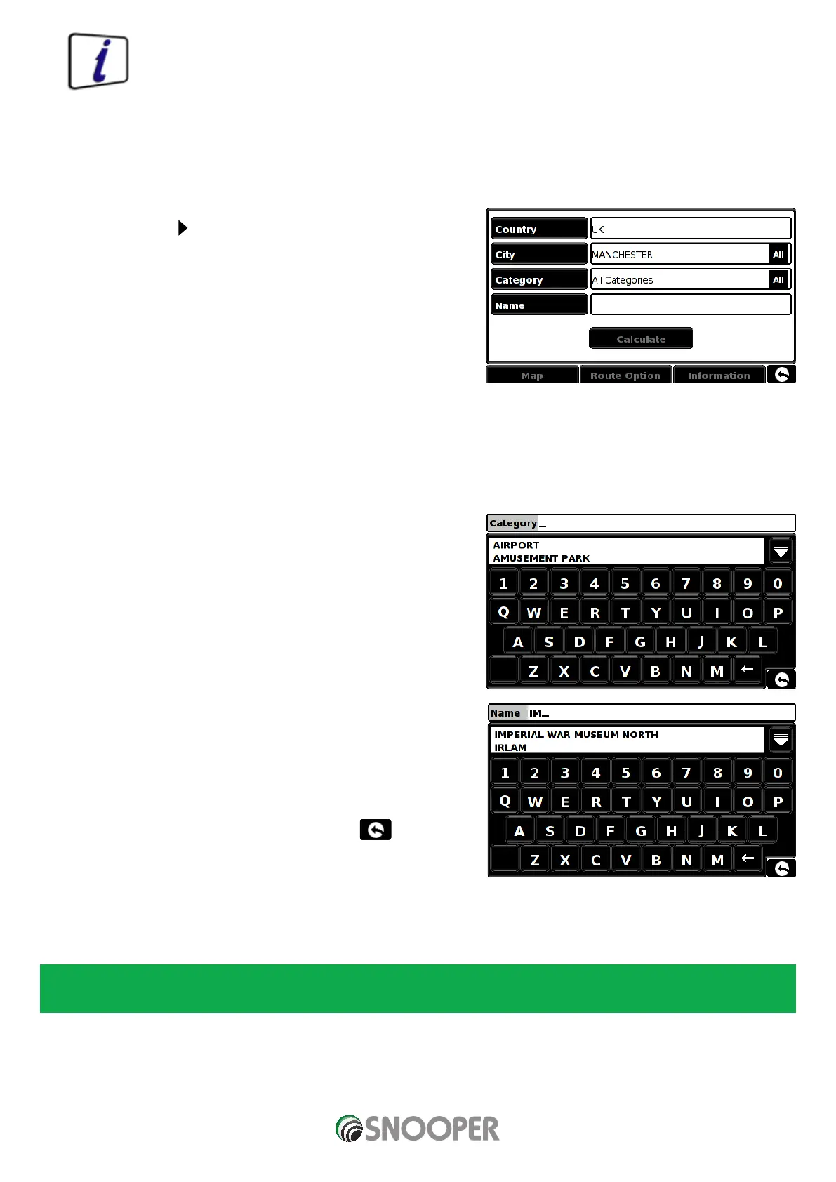 If you would like to calculate a route to a hotel, airport, restaurant or even a golf course Snooper can calculate a route using its