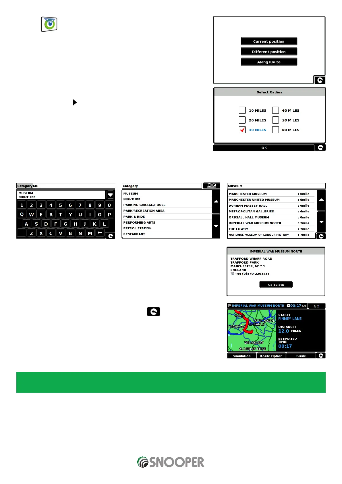 A list of POI’s within the specified radius and category will be displayed. Use the arrows to