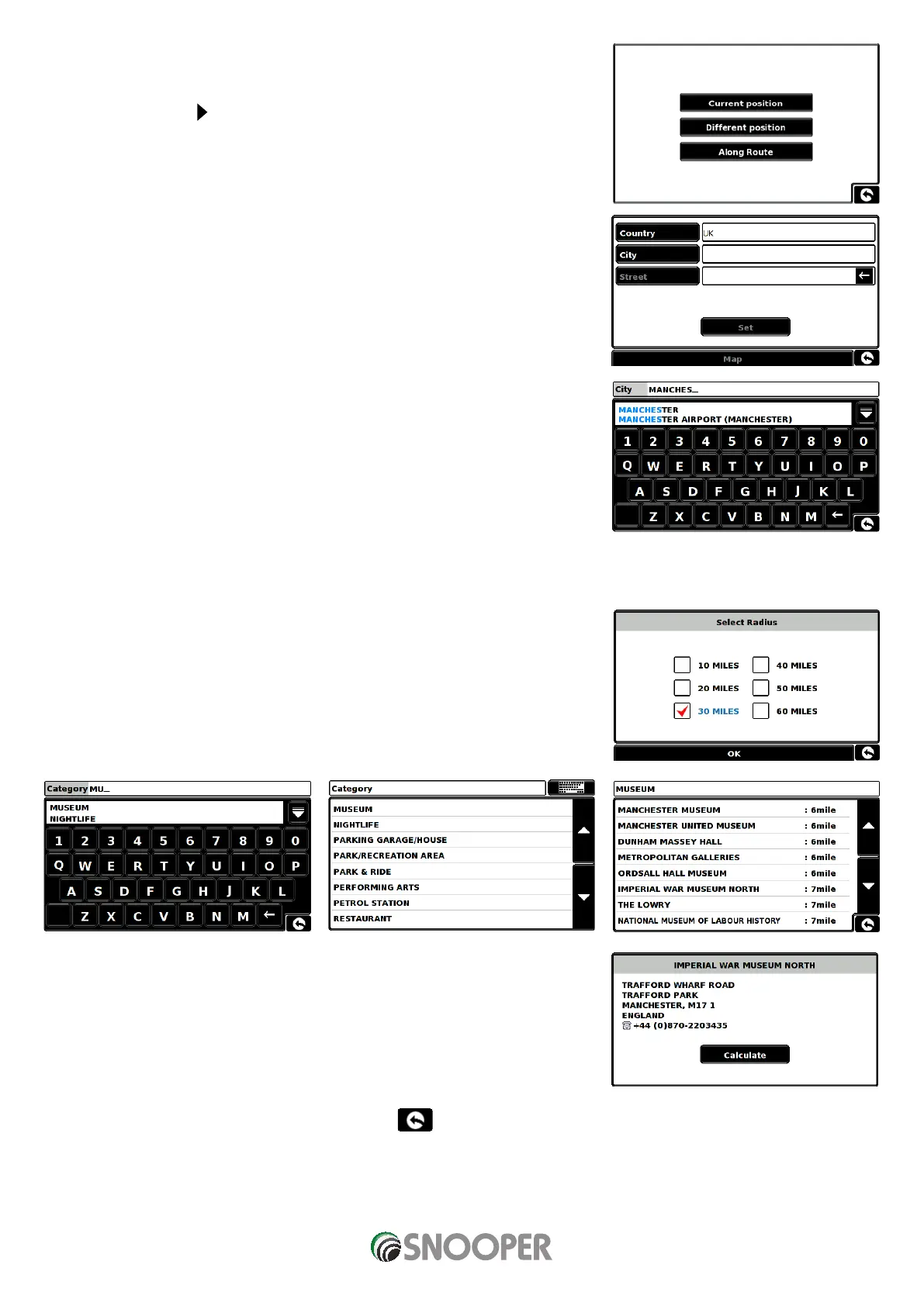 A list of POI’s within the specified radius and category will be displayed. Use the arrows to