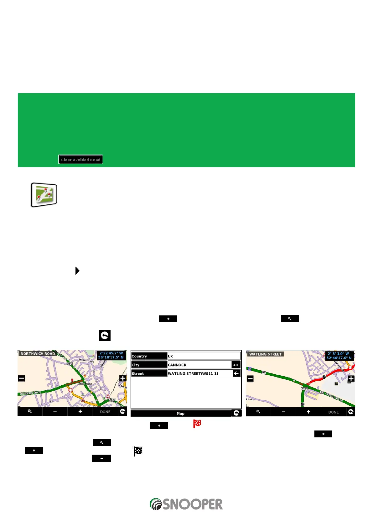 ‘Clear Avoided Road’ button and the original route plotted by Snooper will be restored.