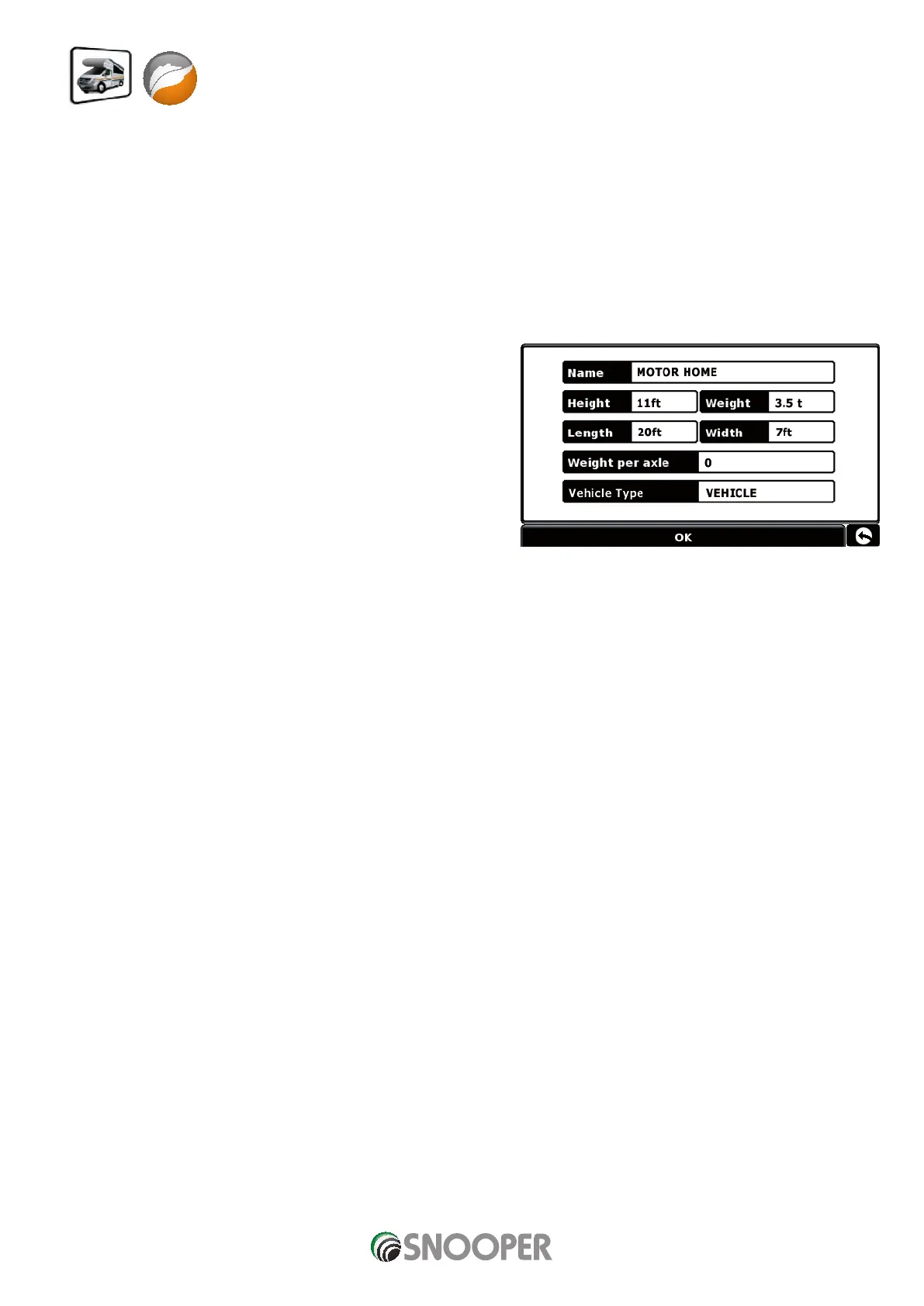 height, weight and width. It is possible to save the settings of 10 different vehicles. Follow these instructions to enter your vehicles