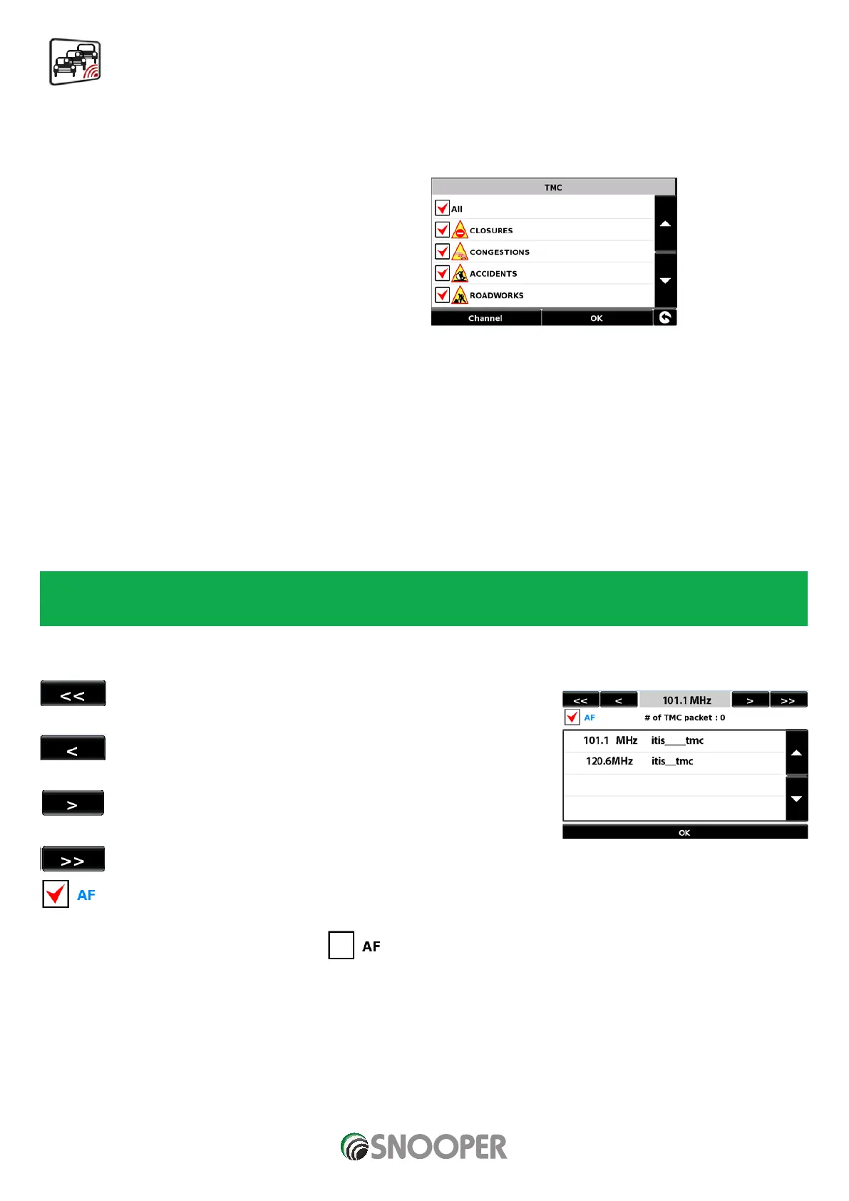 TMC signal. Once a signal is established the unit will then collects packets of data. If you want to tune the frequency manually then