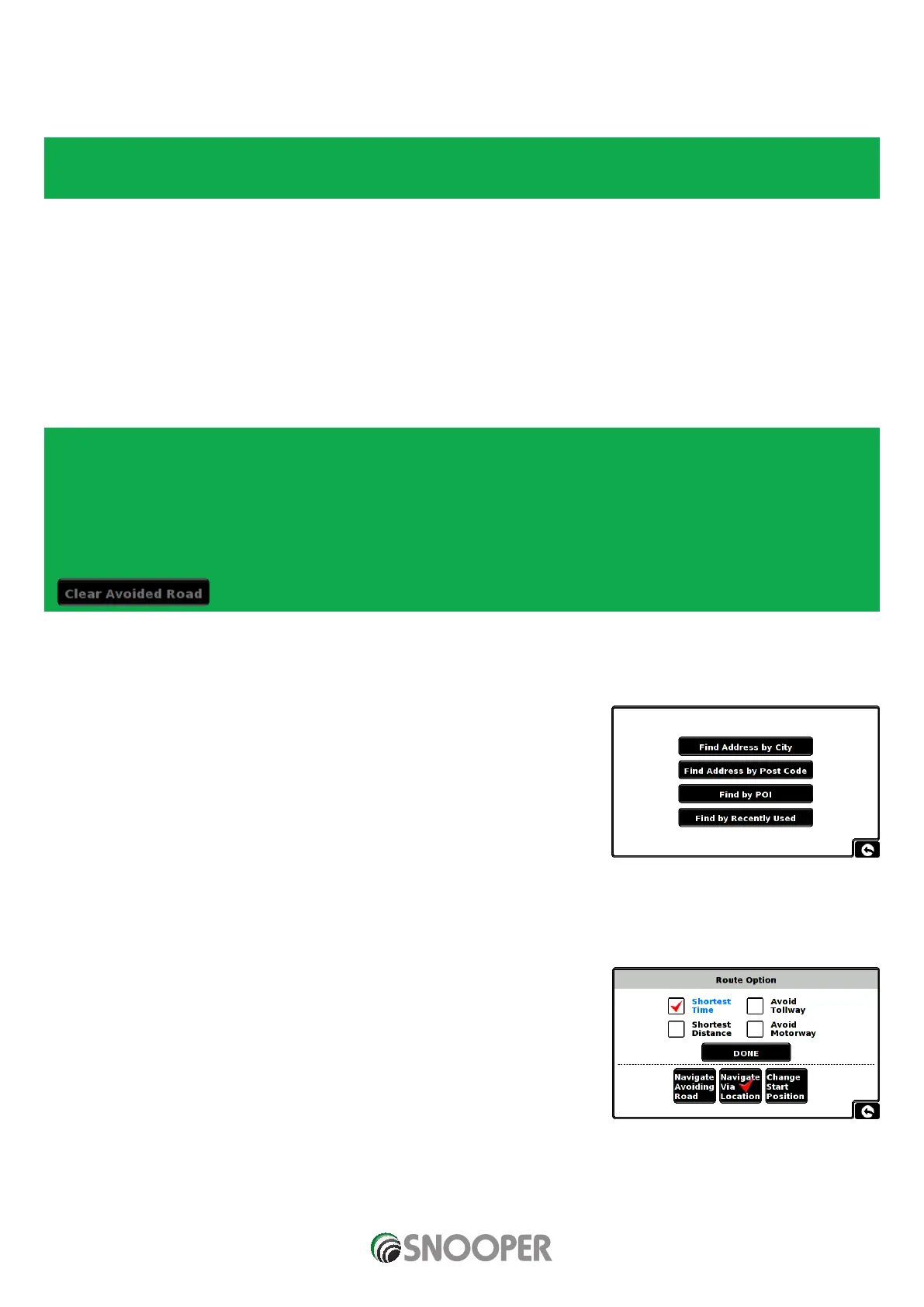 ‘Clear Avoided Road’ button and the original route plotted by Snooper will be restored.