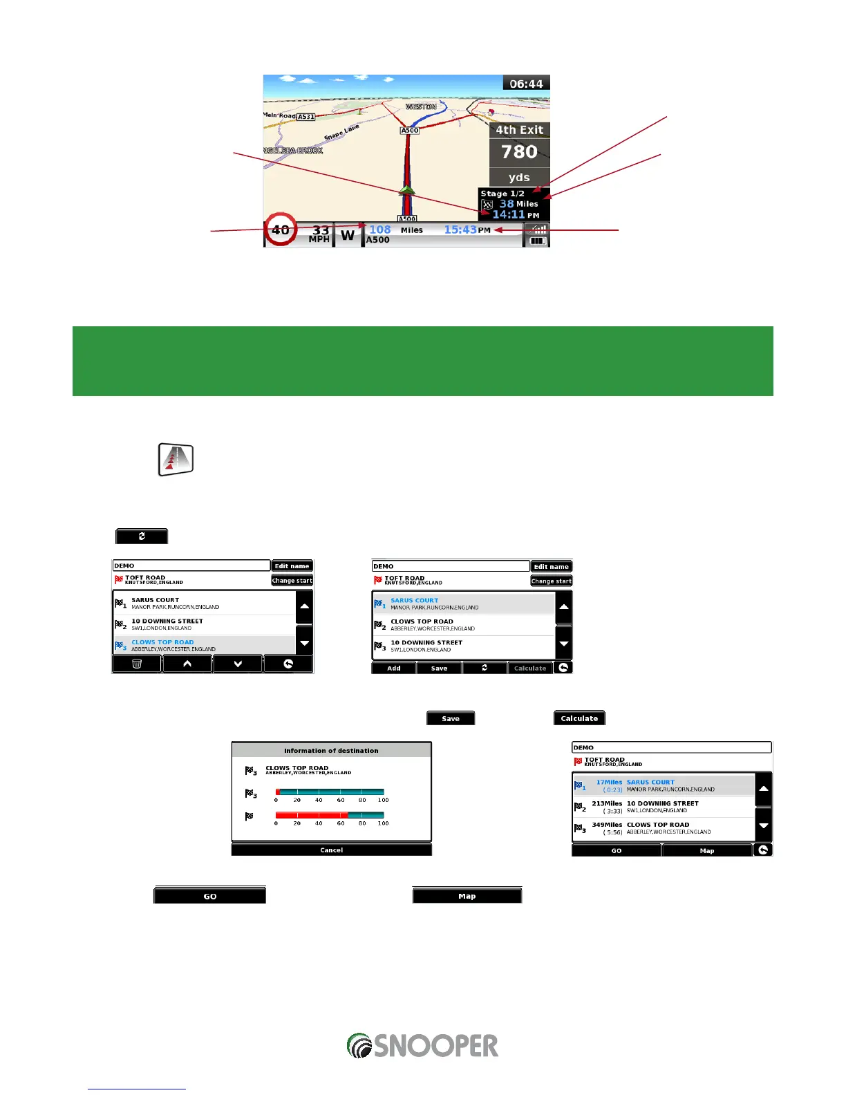 die aktuelle Route bei und fragt Sie, ob Sie mit dem aktuellen Zielort oder der nächsten Etappe weitermachen oder die