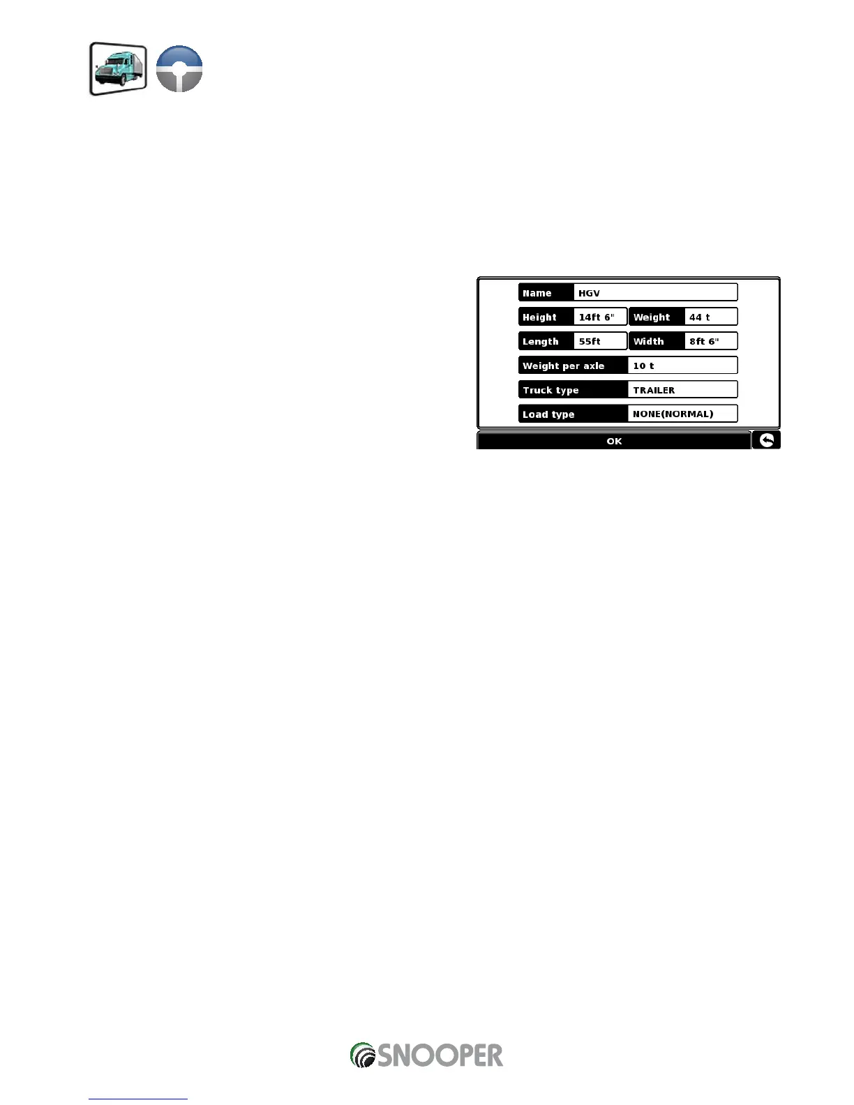Fahrzeug selbst verfügen, wie z. B. Höhe, Breite und Gewicht. Es können die Einstellungen von 10 verschiedenen LKW gespeichert