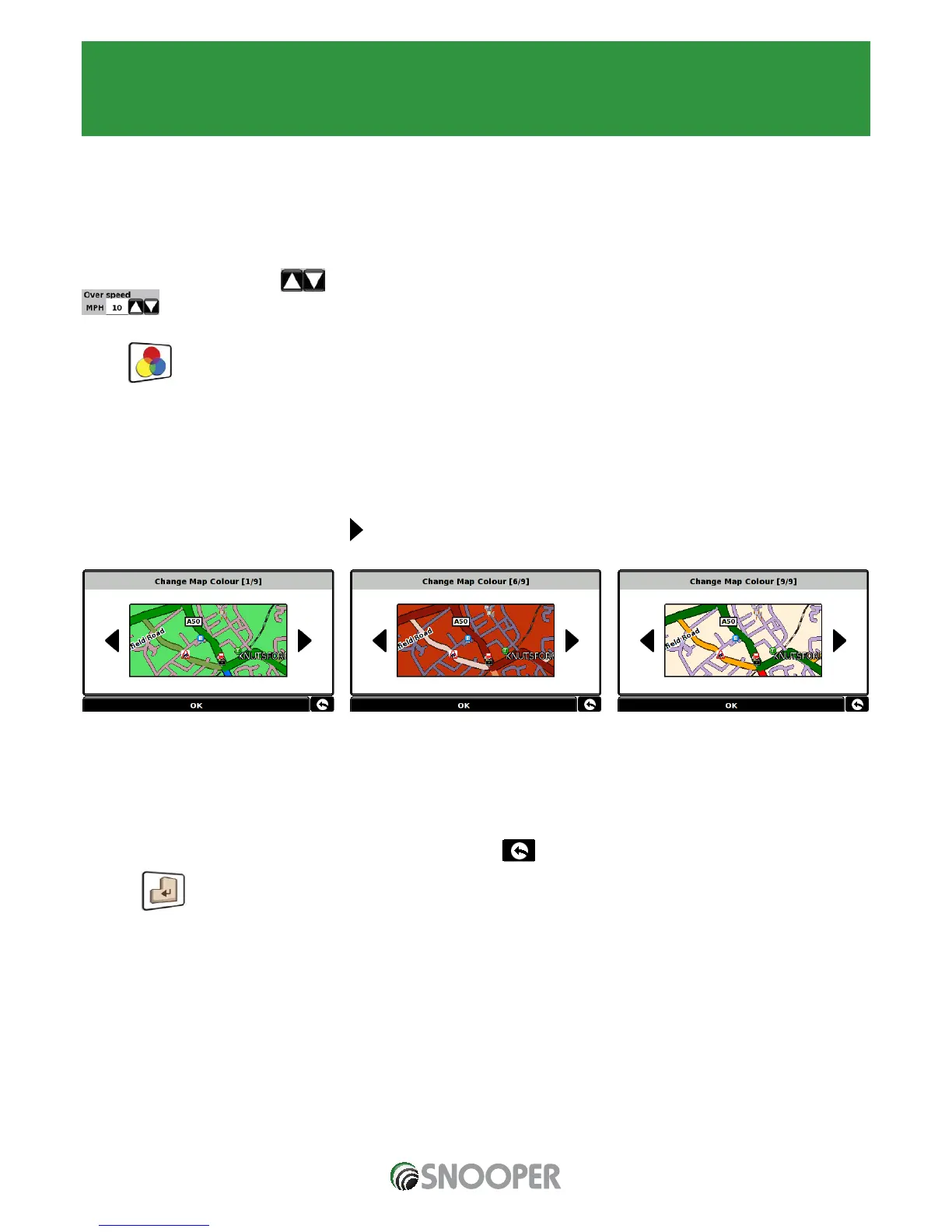 Mit den Pfeiltasten auf der linken und rechten Seite der Karte können Sie durch die verschiedenen Farbschemata blättern. Es stehen