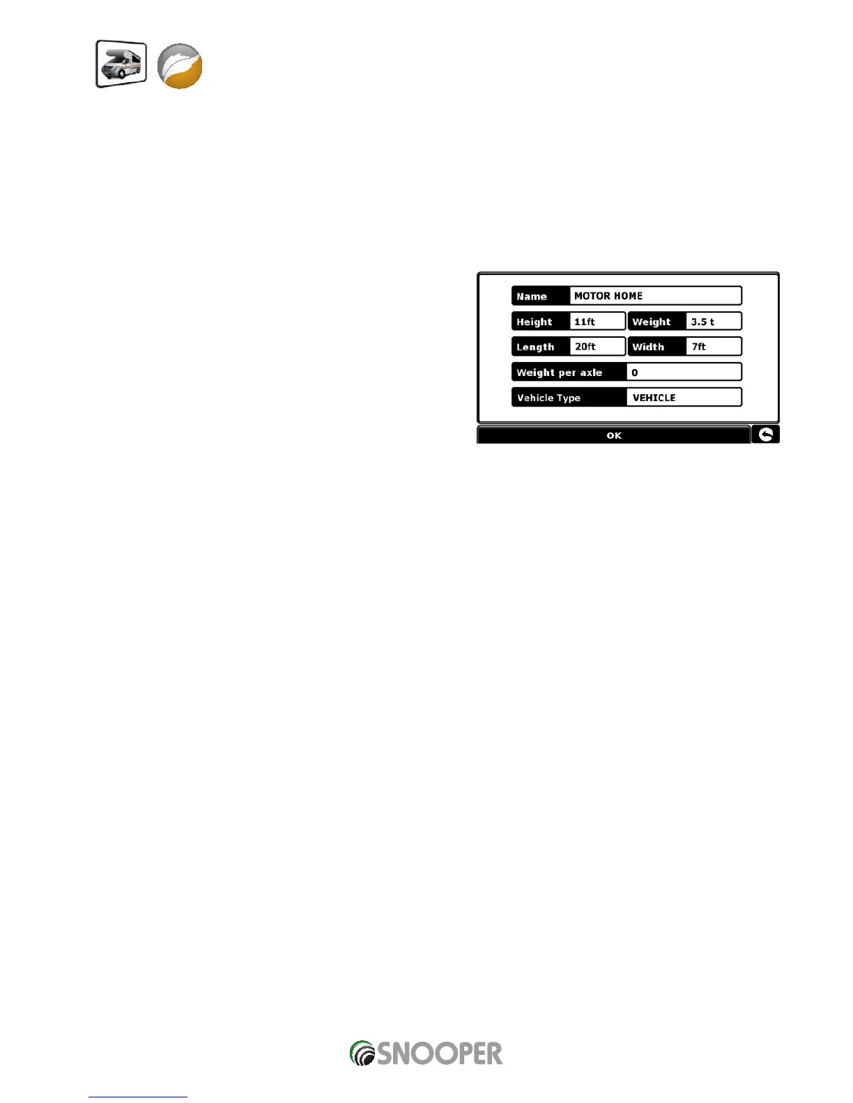 véhicule, telles que sa hauteur, son poids et sa largeur. Il est possible d’enregistrer les paramètres de 10 véhicules différents. Suivez les