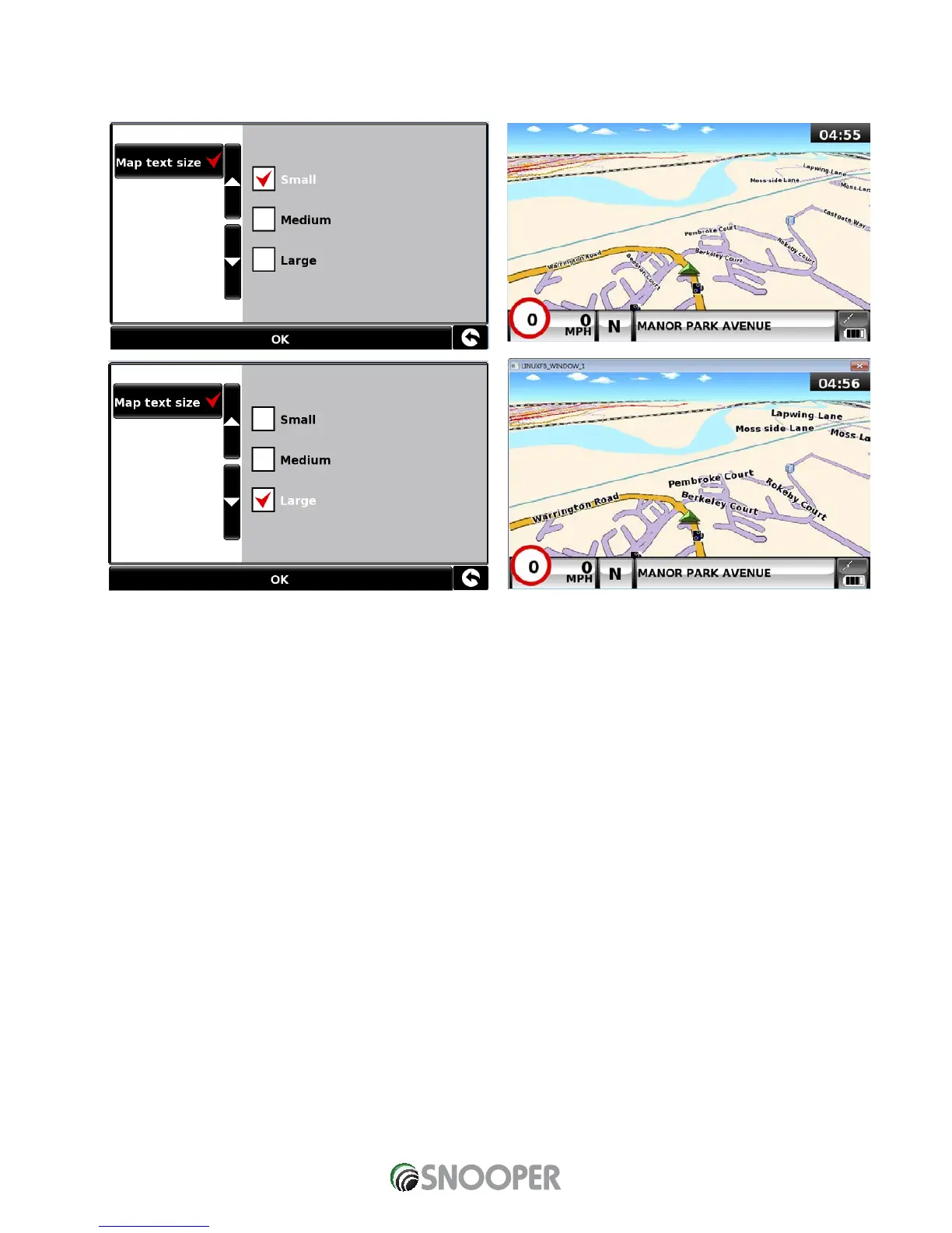 This option allows you to increase or decrease the size of the road and place name text which appears on the map screen