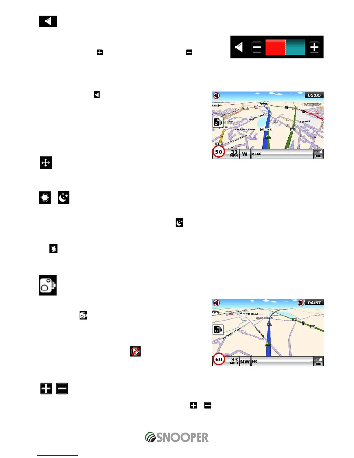 the audio level of the unit. Press the ‘Volume Control’ icon. To adjust the volume, use