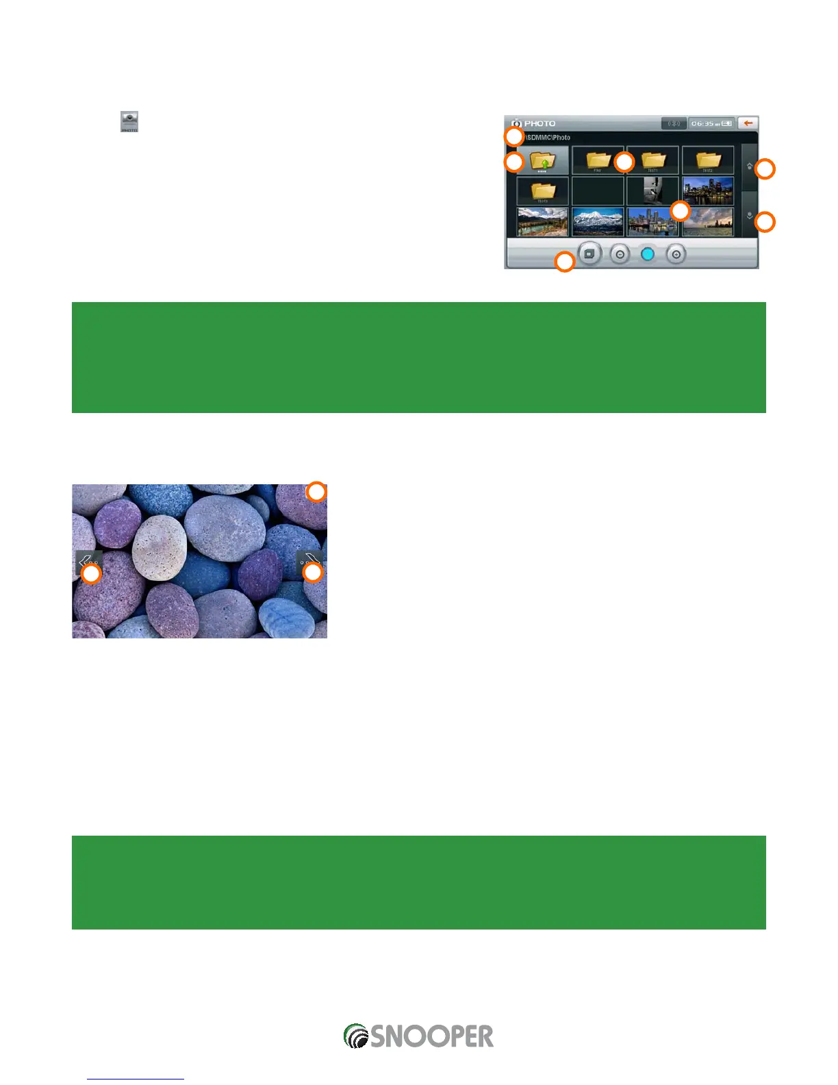 To view photos press the PHOTO button. Photos can be added to the existing SD card or prepared on a separate SD card.