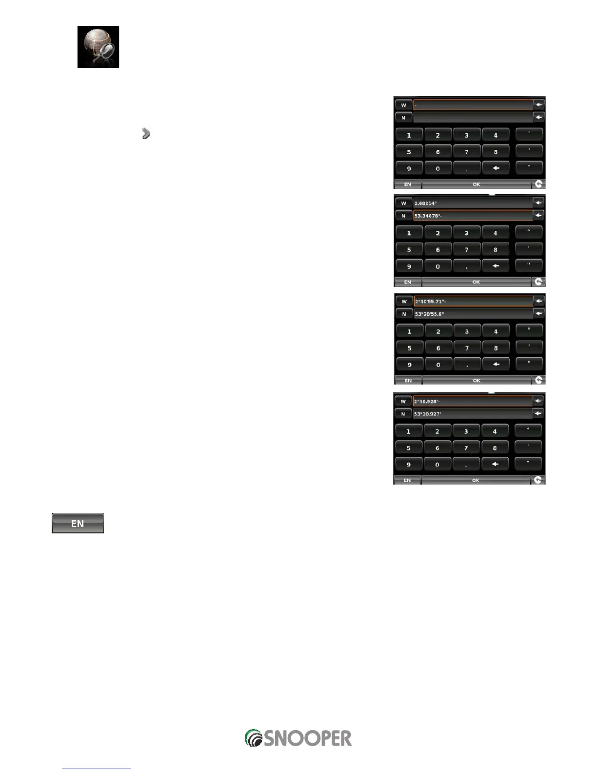 Enter the coordinate using the key pad and press the ‘OK’ button.