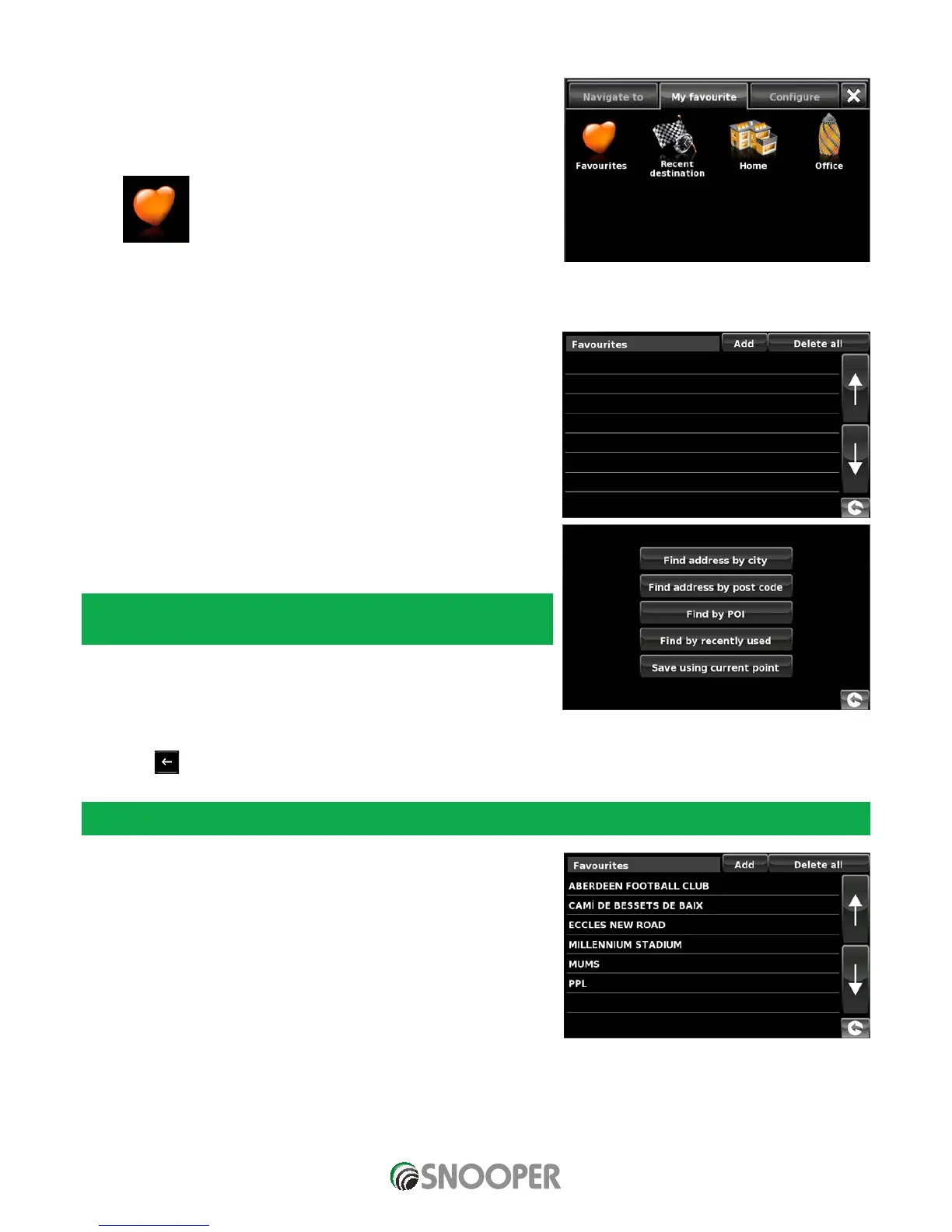 The ‘My Favourite’ menu allows you to store destinations that you visit