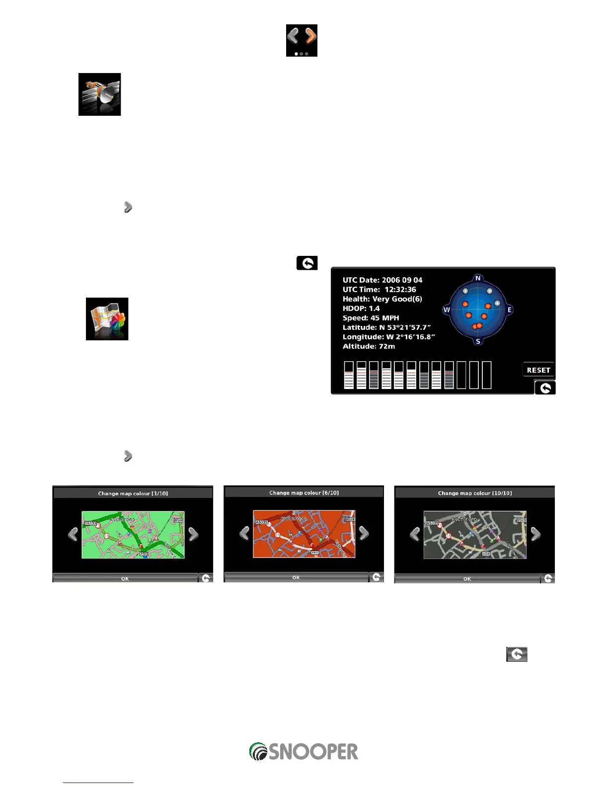 If you wish to exit the ‘GPS status’ menu press the return arrow