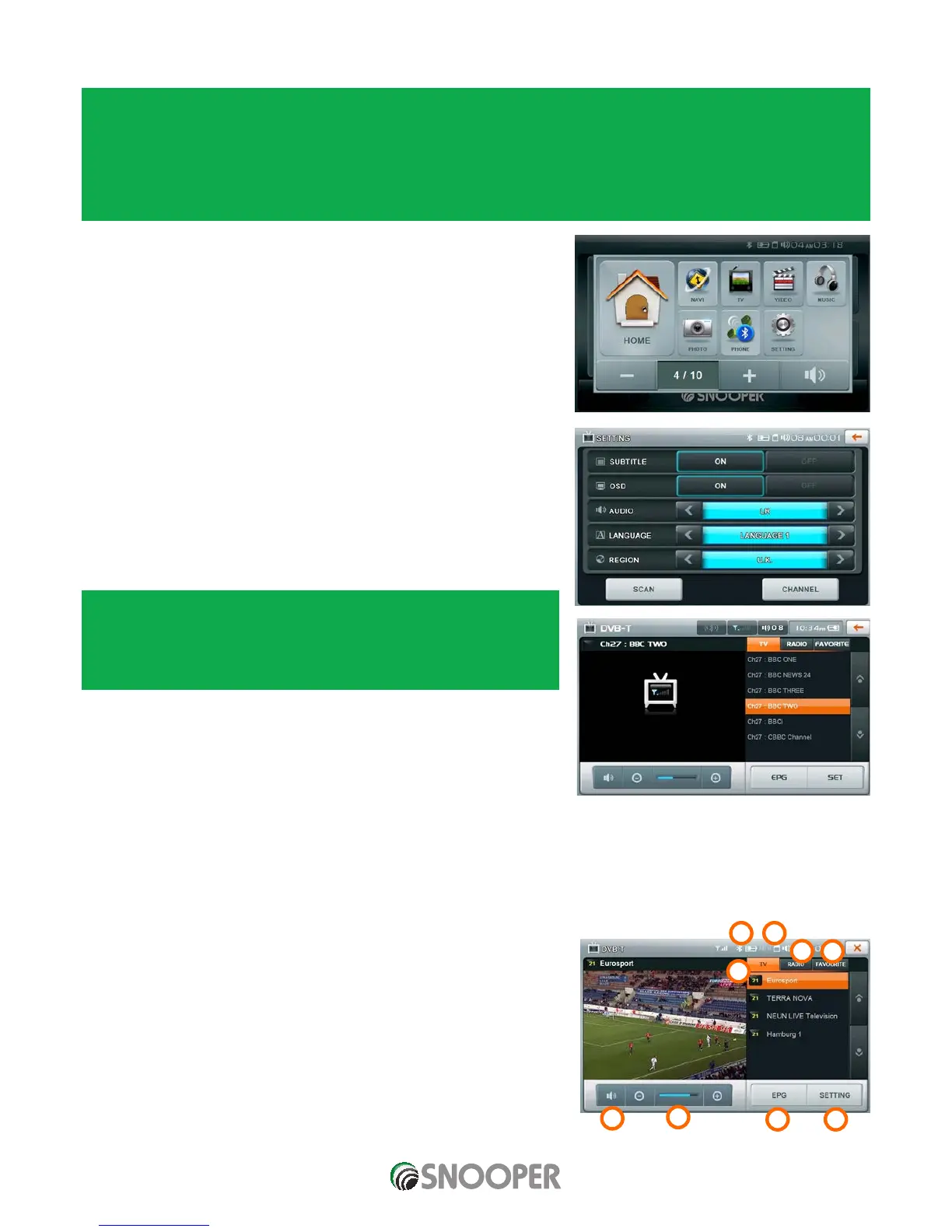 Never attempt to watch DVB-T digital TV whilst driving a vehicle. If a passenger wishes to view DVB-T in a moving vehicle, the unit