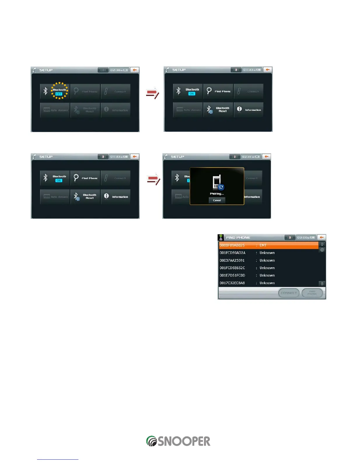 1. Activate the Bluetooth function by pressing the “Bluetooth” button on the Setup screen.
