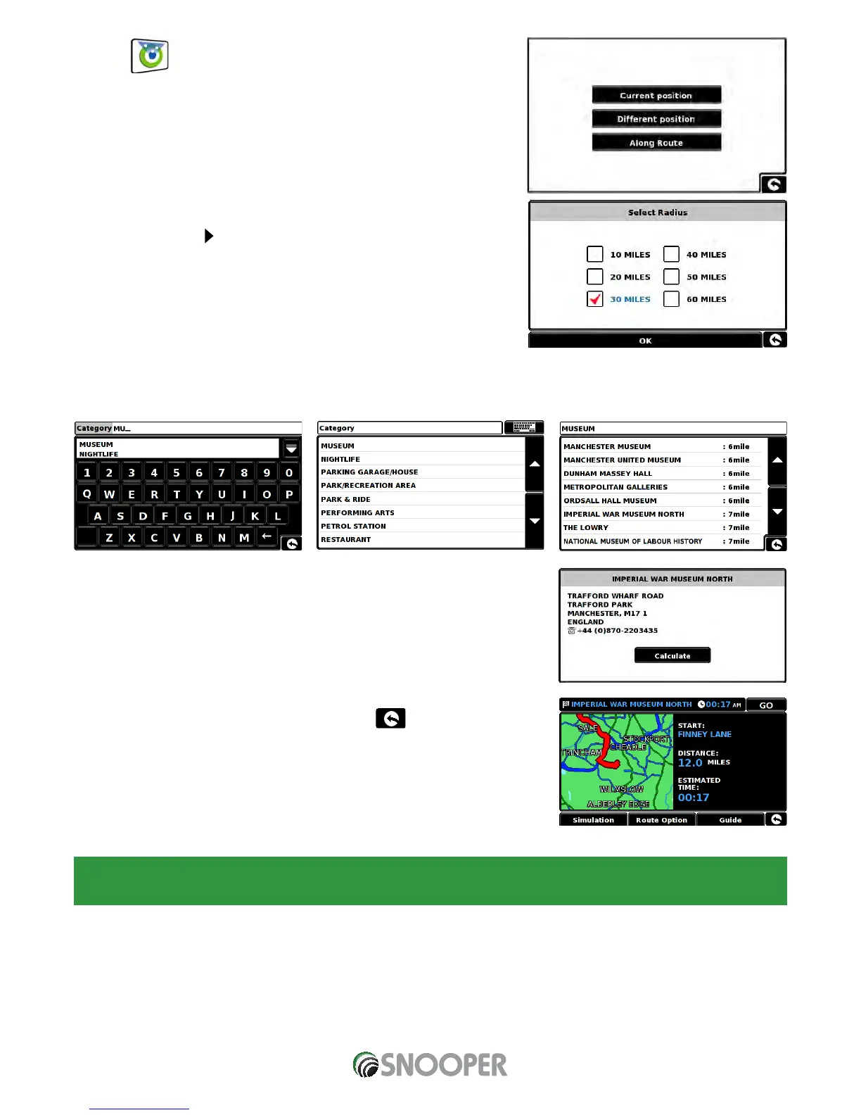 A list of POI’s within the specified radius and category will be displayed. Use the arrows to
