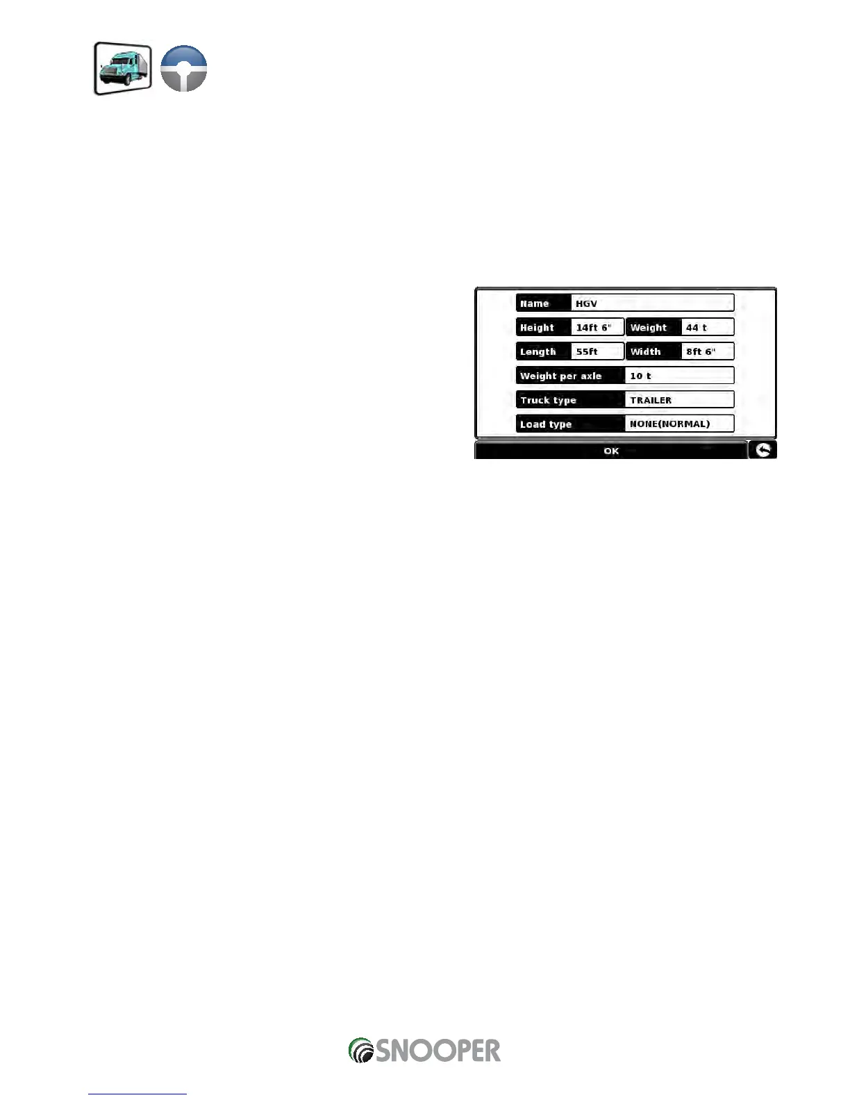 height, weight and width. It is possible to save the settings of 10 different trucks. Follow these instructions to enter your vehicles