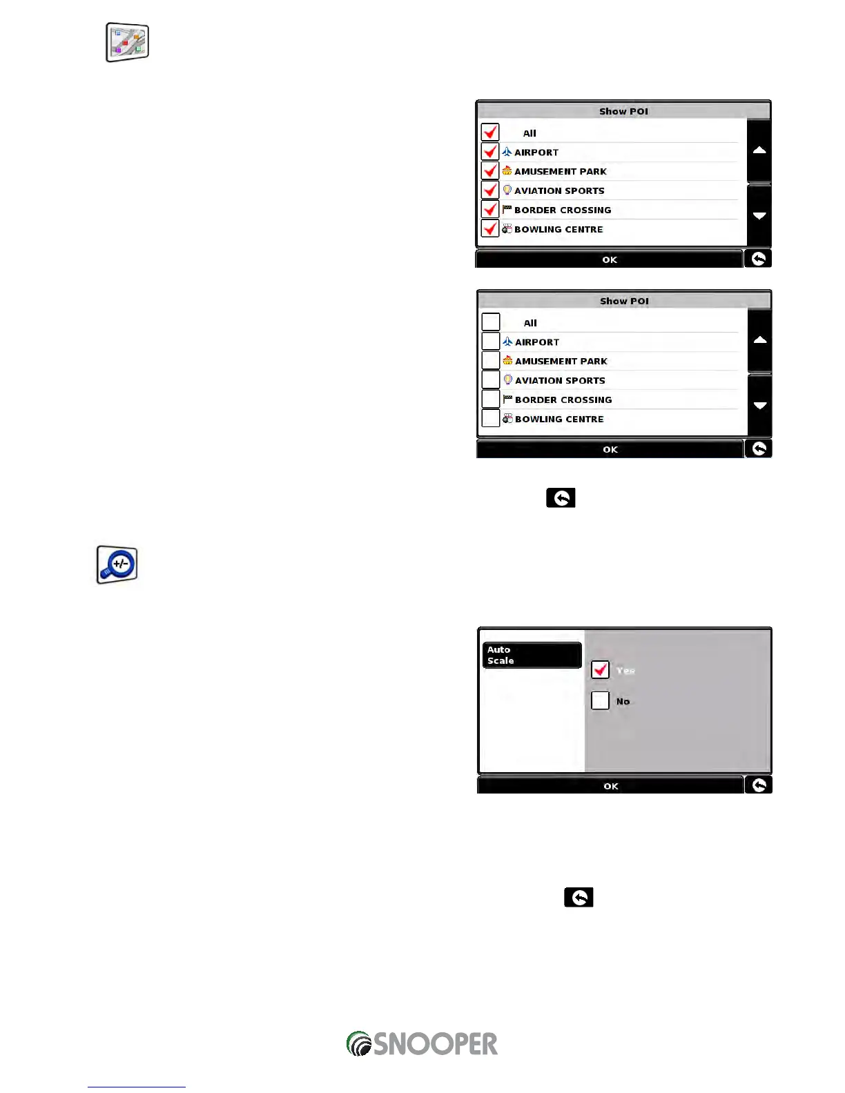 If you wish to exit the ‘Show POI’ list without saving any changes press the return arrow located in the bottom right hand