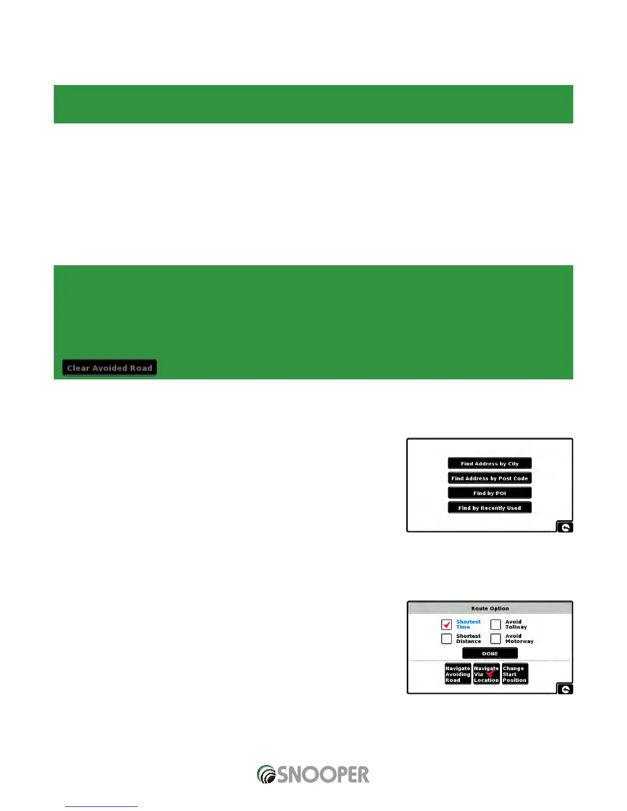 ‘Clear Avoided Road’ button and the original route plotted by Snooper will be restored.