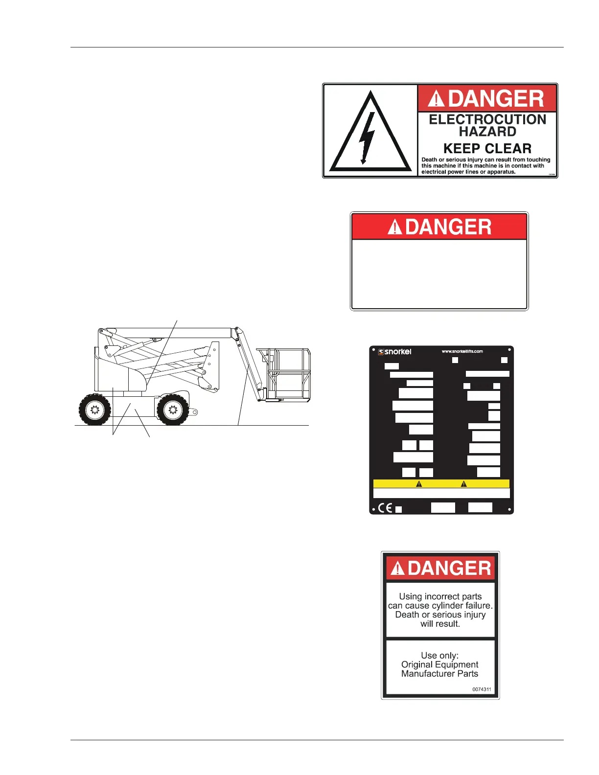 To prevent machine tip over, replace tires with factory approved