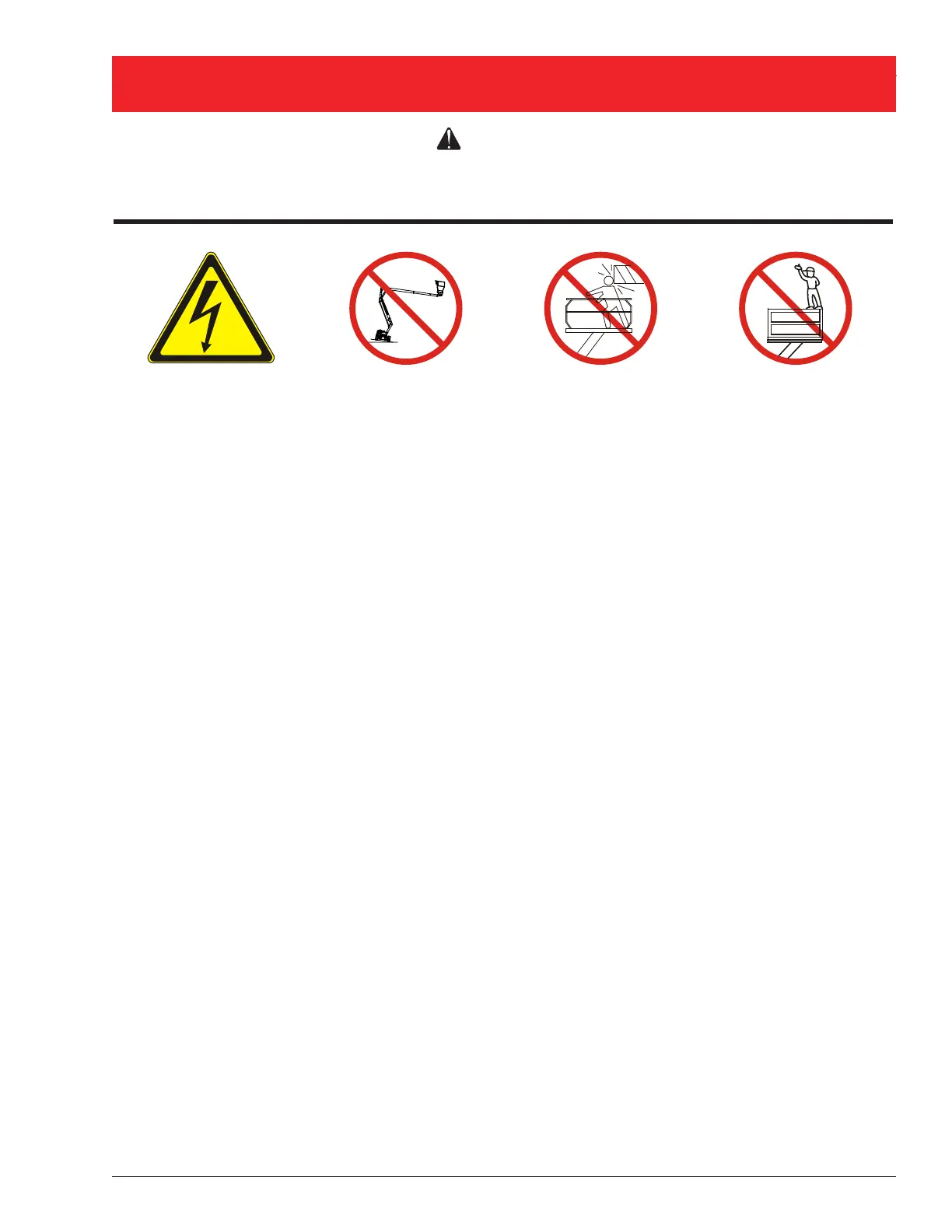 THIS AERIAL WORK PLATFORM IS NOT INSULATED! For this reason it is imperative to keep a safe distance from live