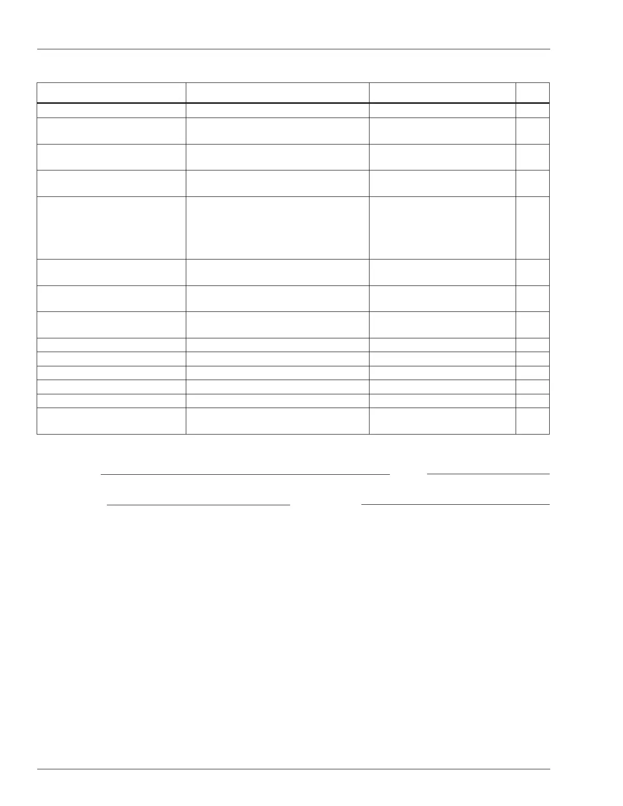 Maintenance Table Key: P = Pass, F = Fail, R = Repaired