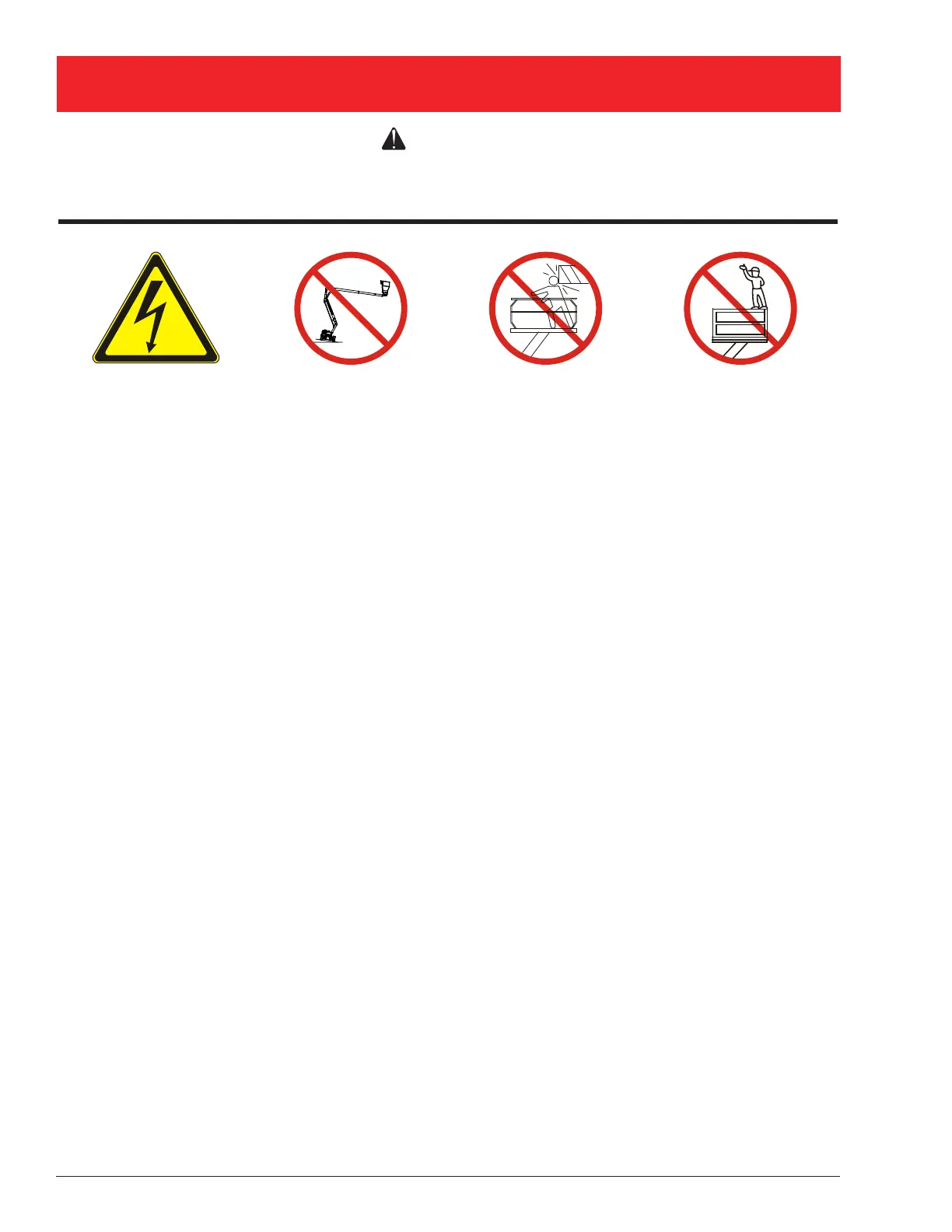 THIS AERIAL WORK PLATFORM IS NOT INSULATED! Refer to applicable national/governmental/local regulations for safe