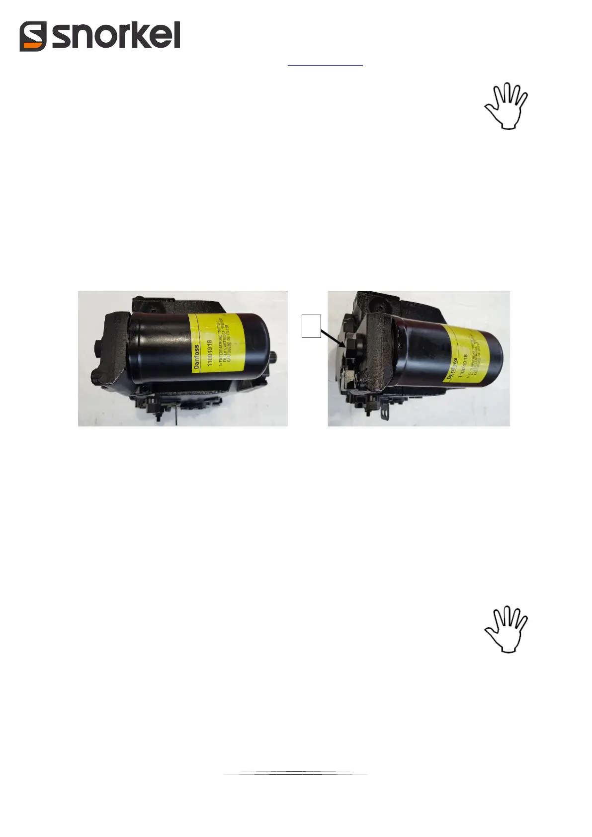 • Remove the filter from the hydrostatic pump by removing the lower closing sheet of the engine