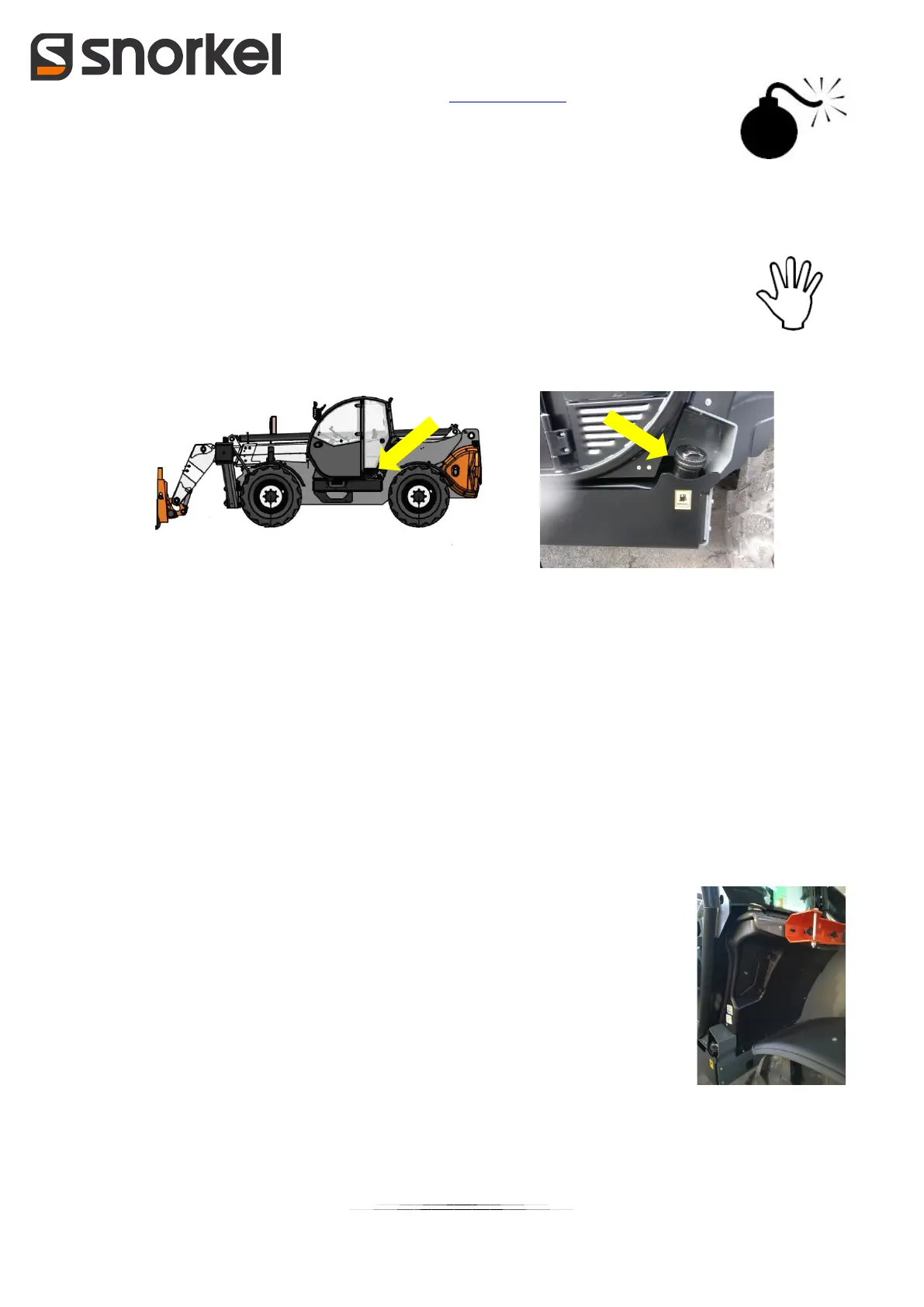 The diesel tank is found under the driver cabin (indicated by the corresponding sticker). The