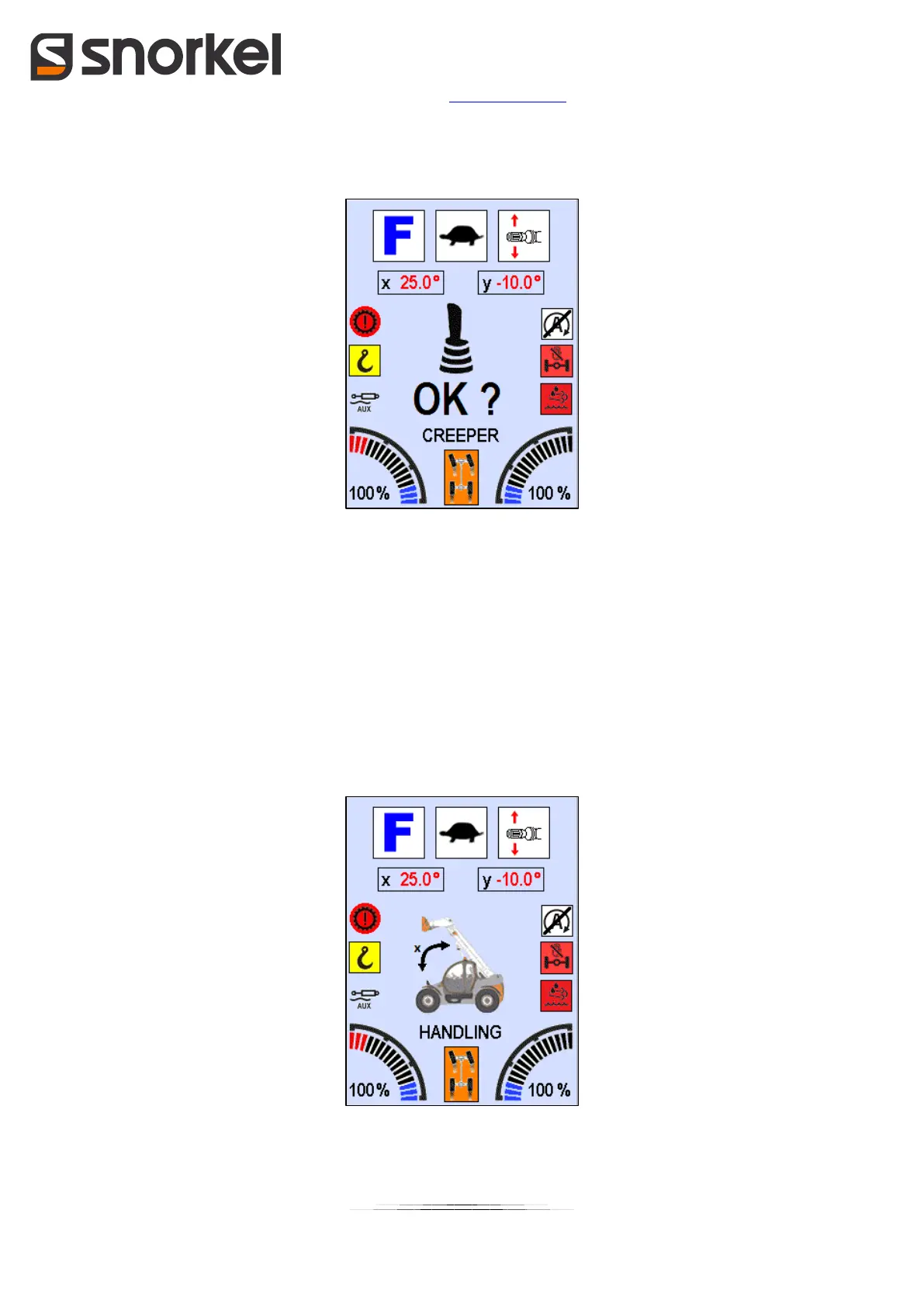The following image will be displayed if the user operates with the machine’s boom raised. In fact, the