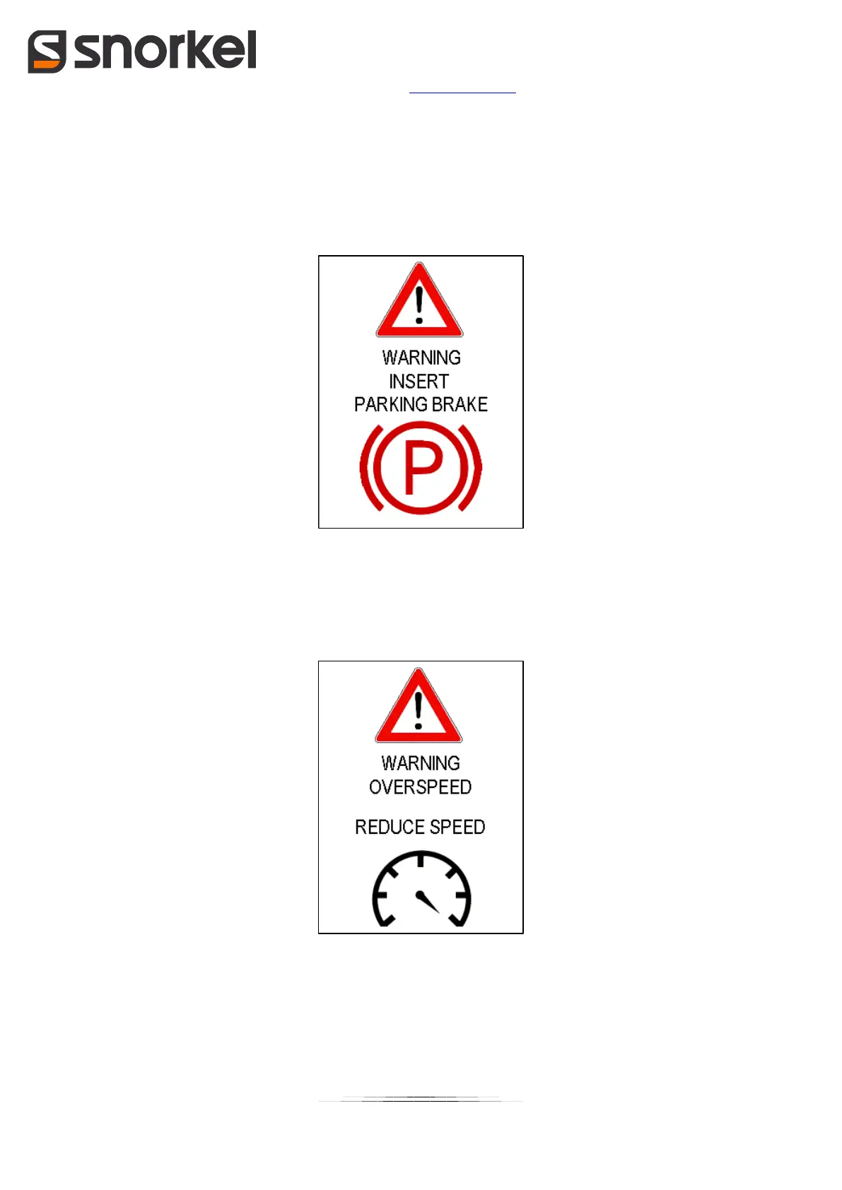 If the operator leaves the driver's seat without first engaging the parking brake, the following warning