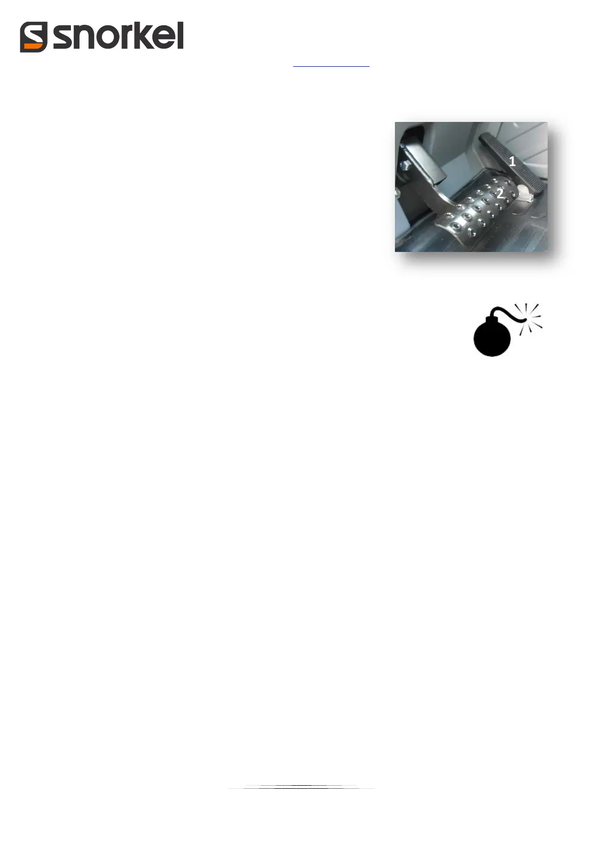 The pedals must always be ready to be actuated with no hindrance. The pedal area must