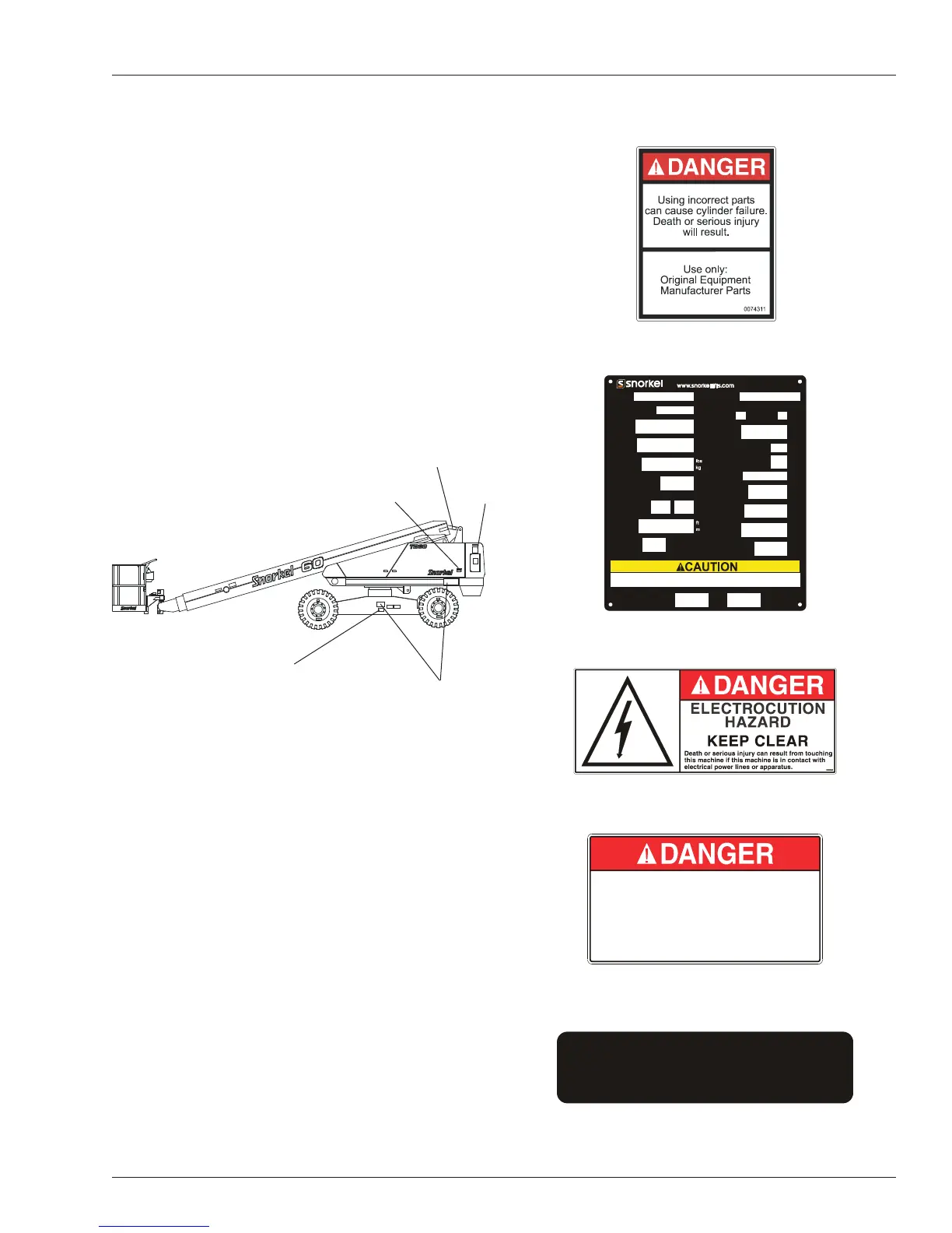 To prevent machine tip over, replace tires with factory approved