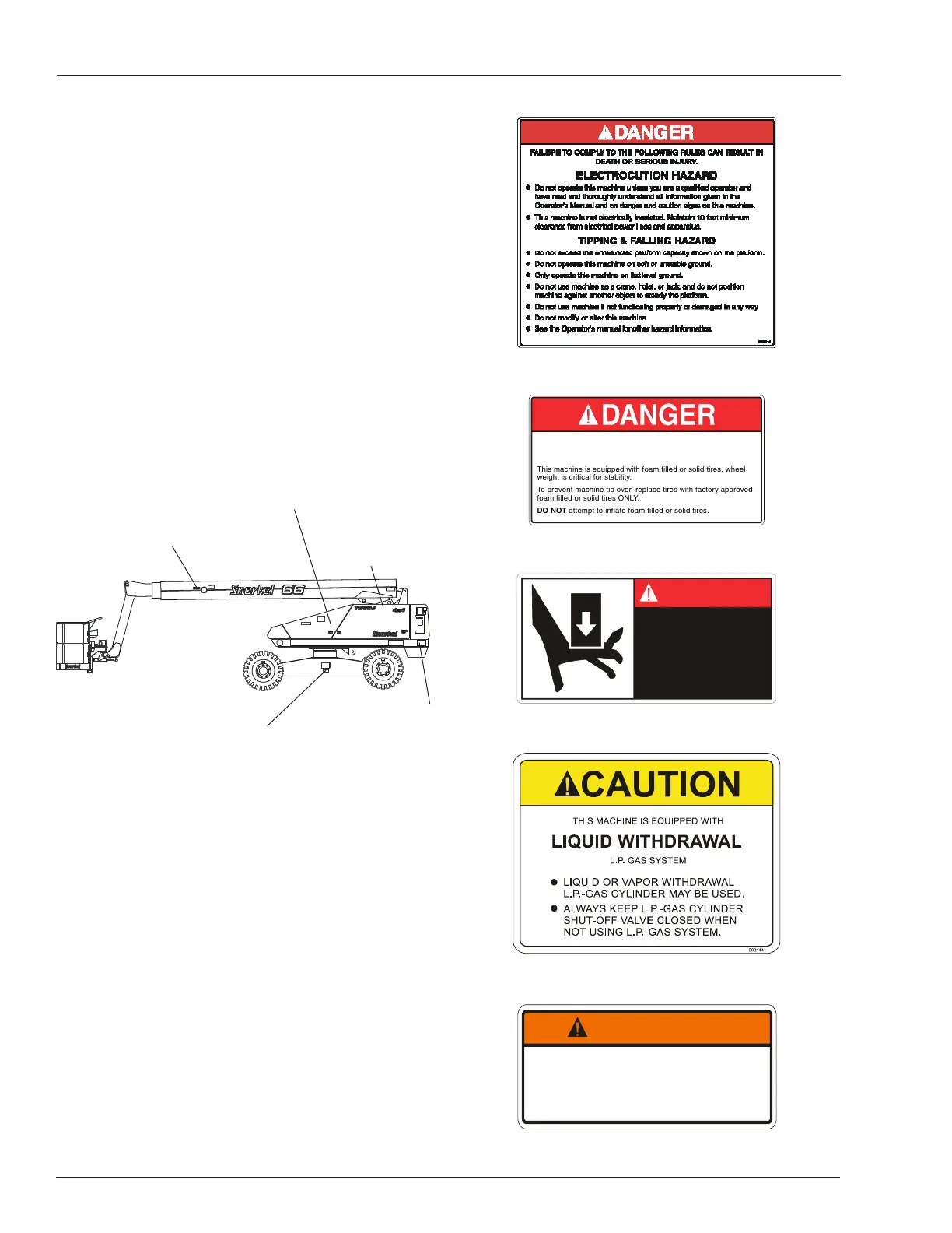 To prevent machine tip over, replace tires with factory approved