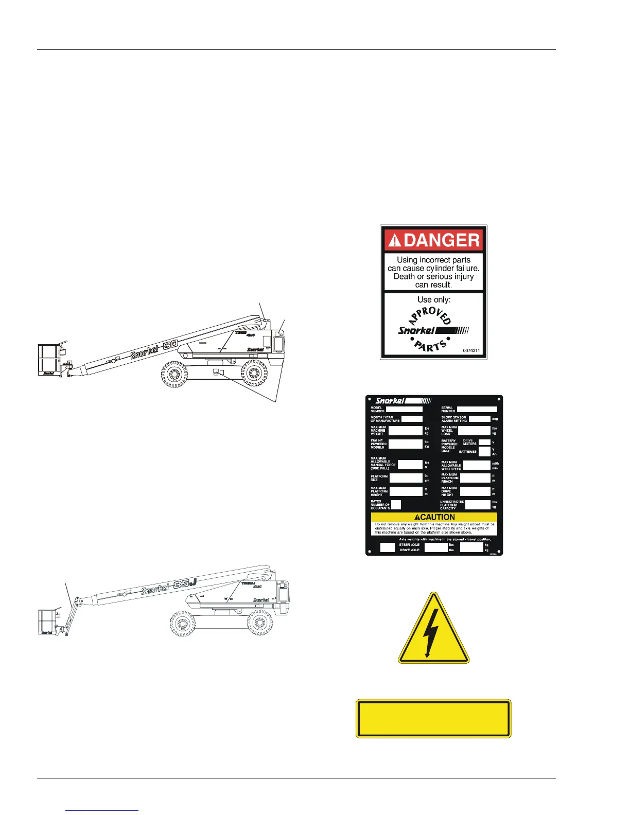 fore operating the aerial platform. Placard and decal kits