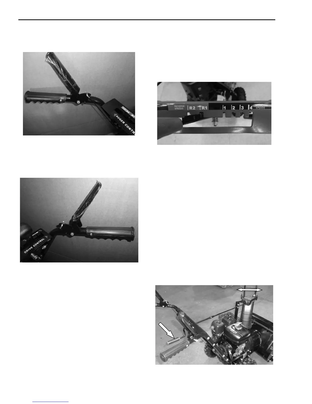 Snow Devil DB7659B-22 - Auger and Drive Controls; Chute Discharge Direction Adjustment