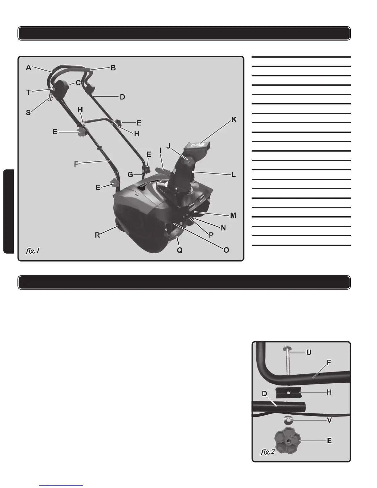 g.2), knobs (E, g.2), and 2 connectors (H, g.2) to separate the upper handle