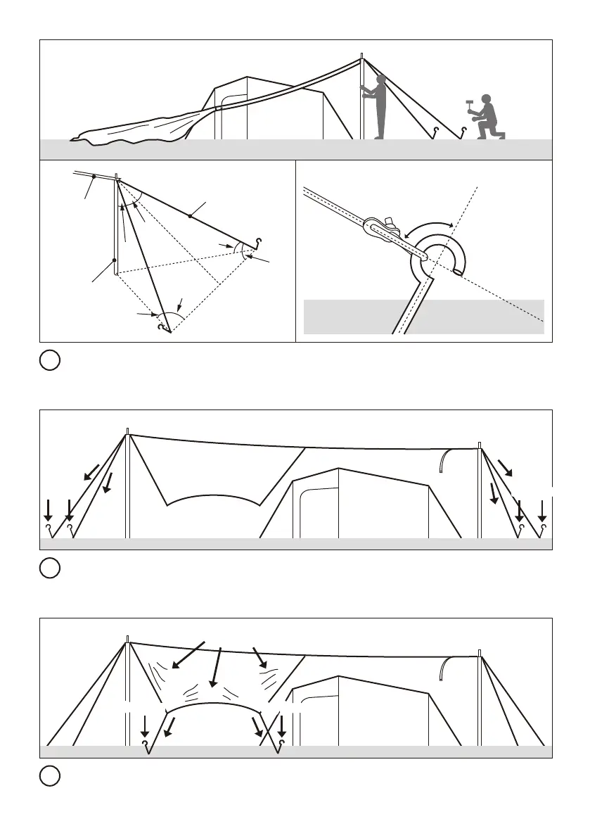 the tape-side pole tip.Then, set the rope at a 45° angle to the pole and drive the peginto