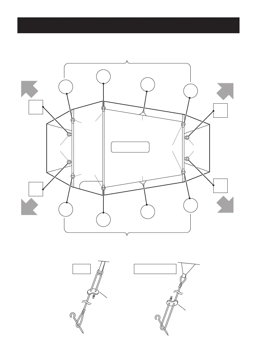 How to attach the rope with the tensioner to the fly; and how to secure the pegs
