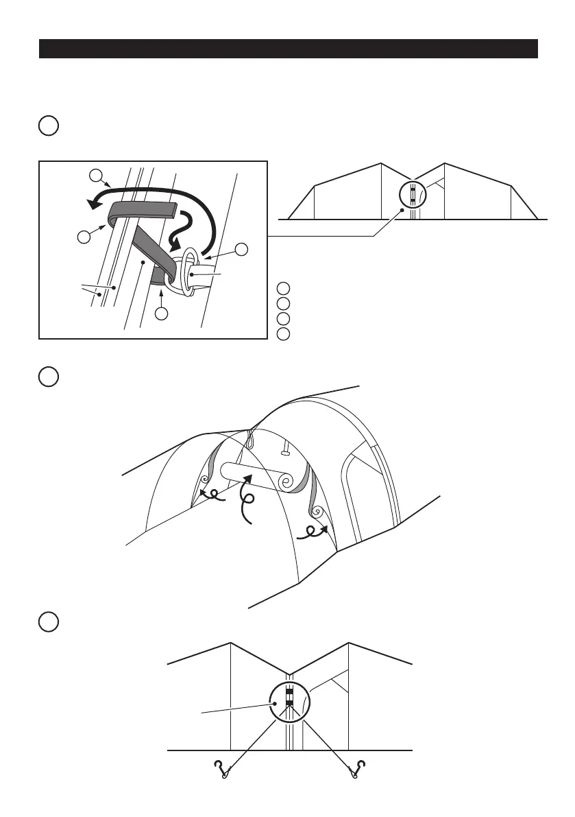 Cross the ropes with a ropetensioner, thensecure with apegandtighten tensioner.