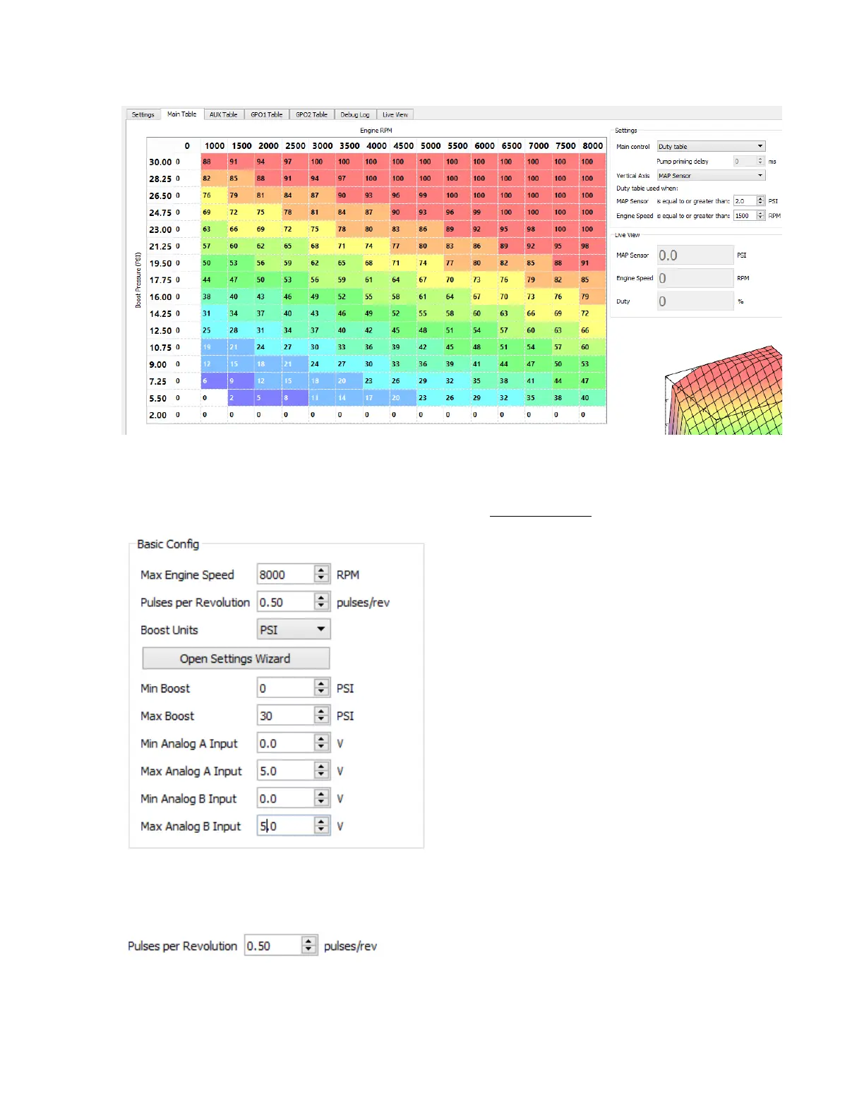 RPM readings are calibrated using the Pulses per Revolution field on the Basic Config Section