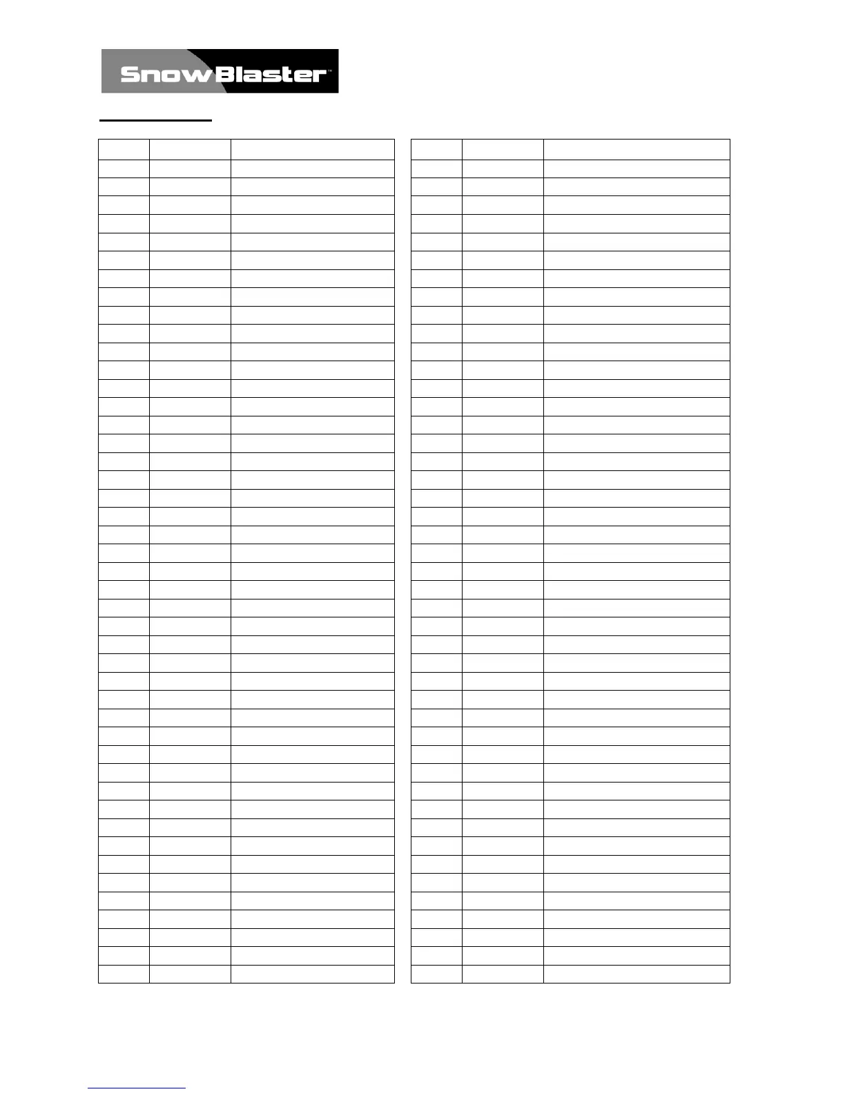 SnowBlaster 56663 - Parts List