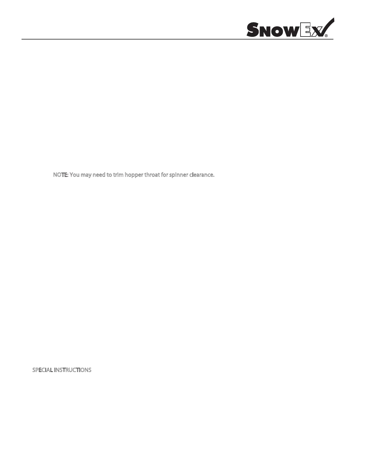 NOTE: If there is insucient space between the spinner and gate (at least 1/2”), the hopper throat should be trimmed back