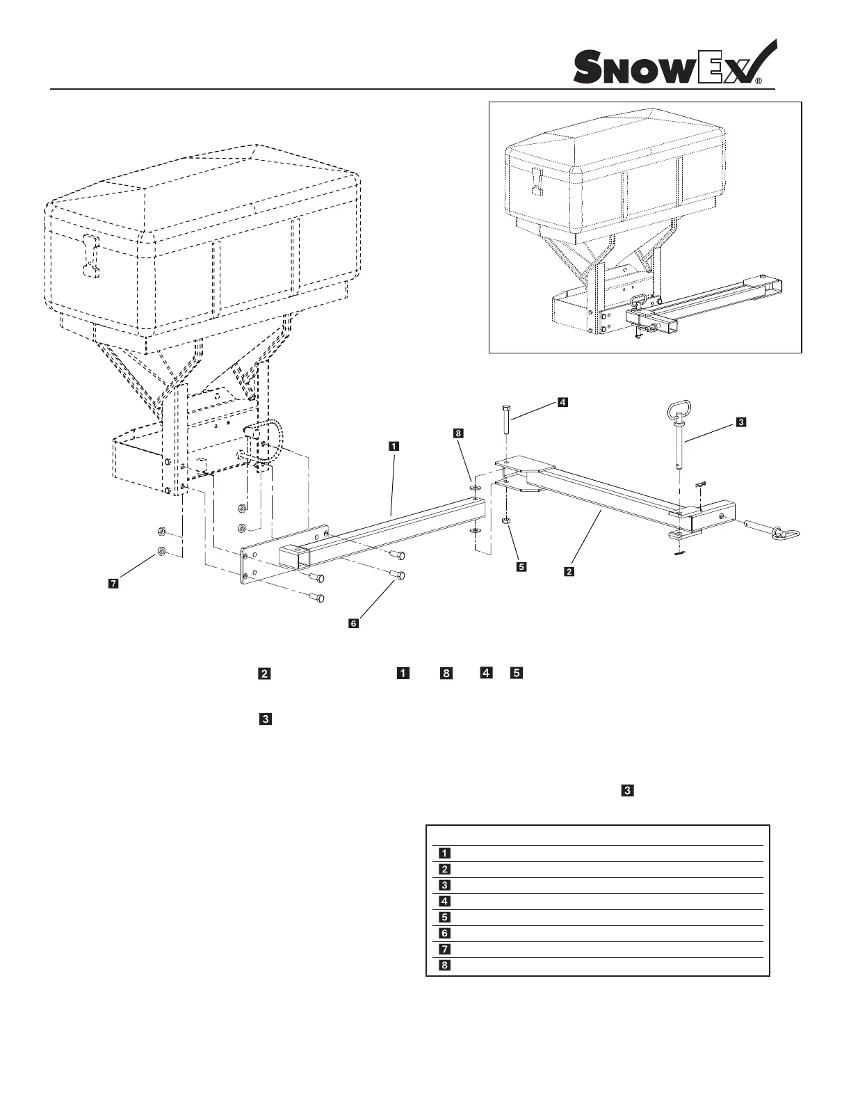 Step 1: Assemble spreader swing arm to spreader hitch arm with and & nut and bolt. Do not over tighten since this